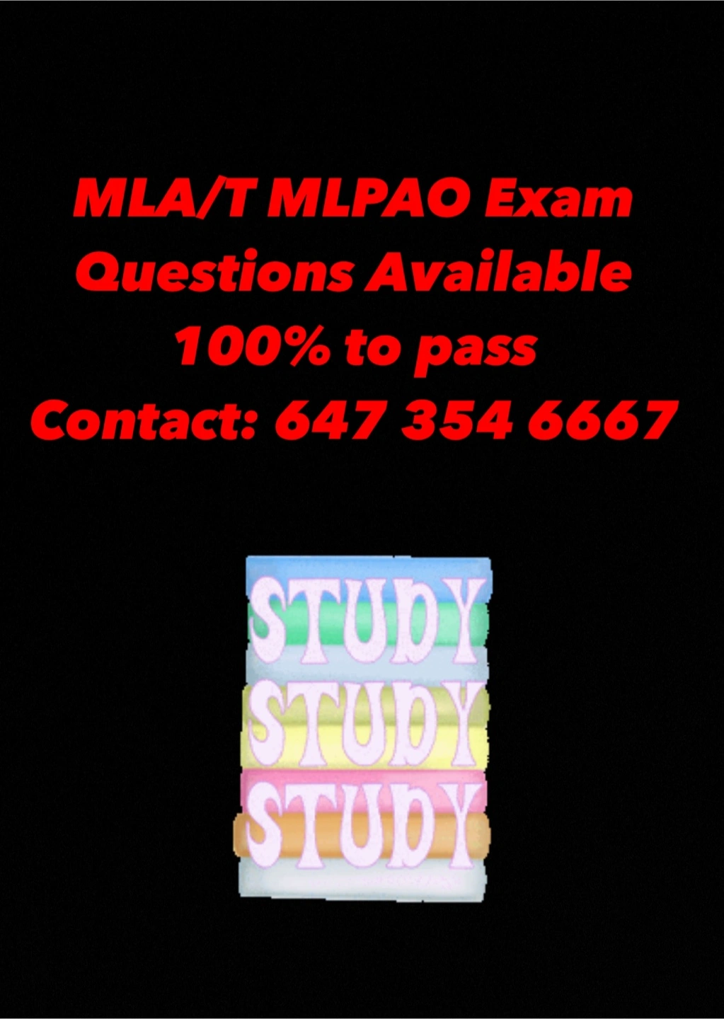 Exam questions for the MLA/T MLPAO exam. Guaranteed to help you pass. Contact for details.