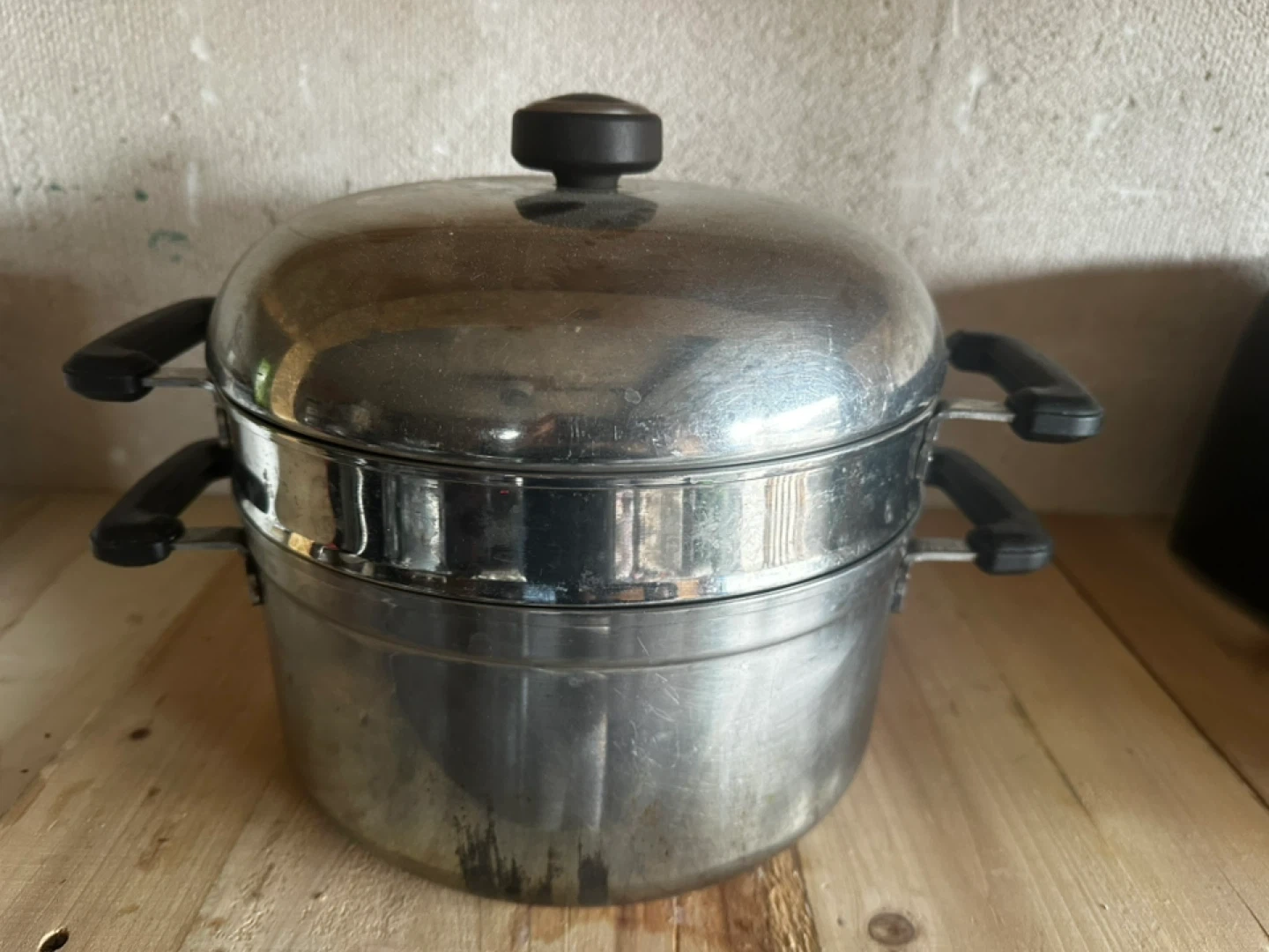 Selling a used stainless steel steamer pot. It has two tiers for steaming multiple items at once. Perfect for cooking vegetables, dumplings, and more!