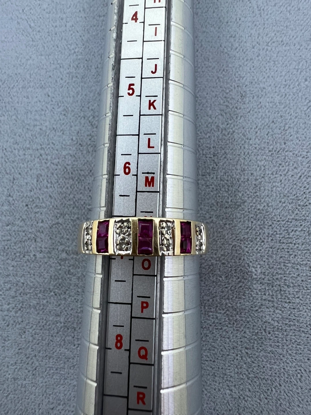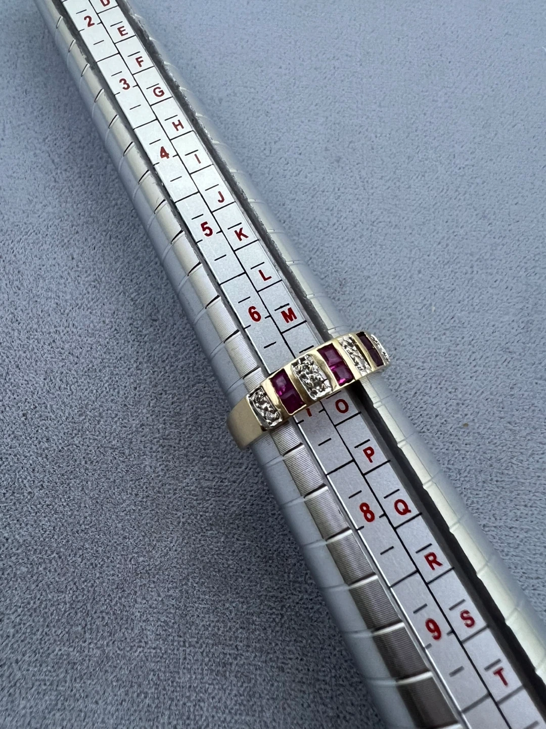 Alternating channel-set natural rubies and shimmering real diamond accents