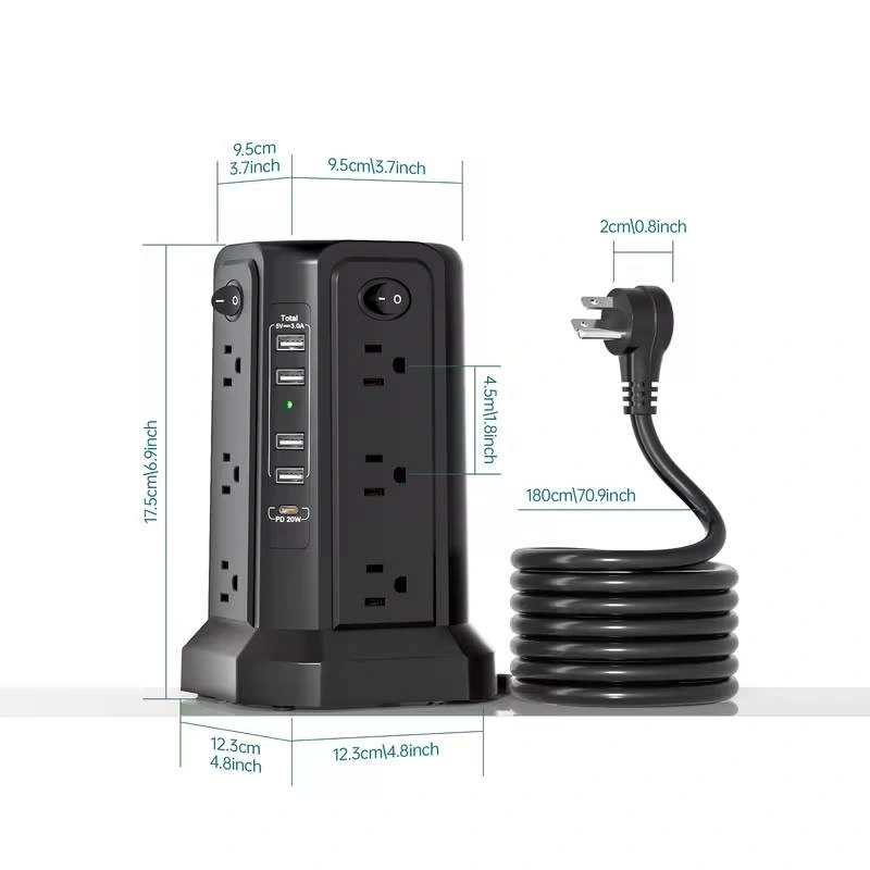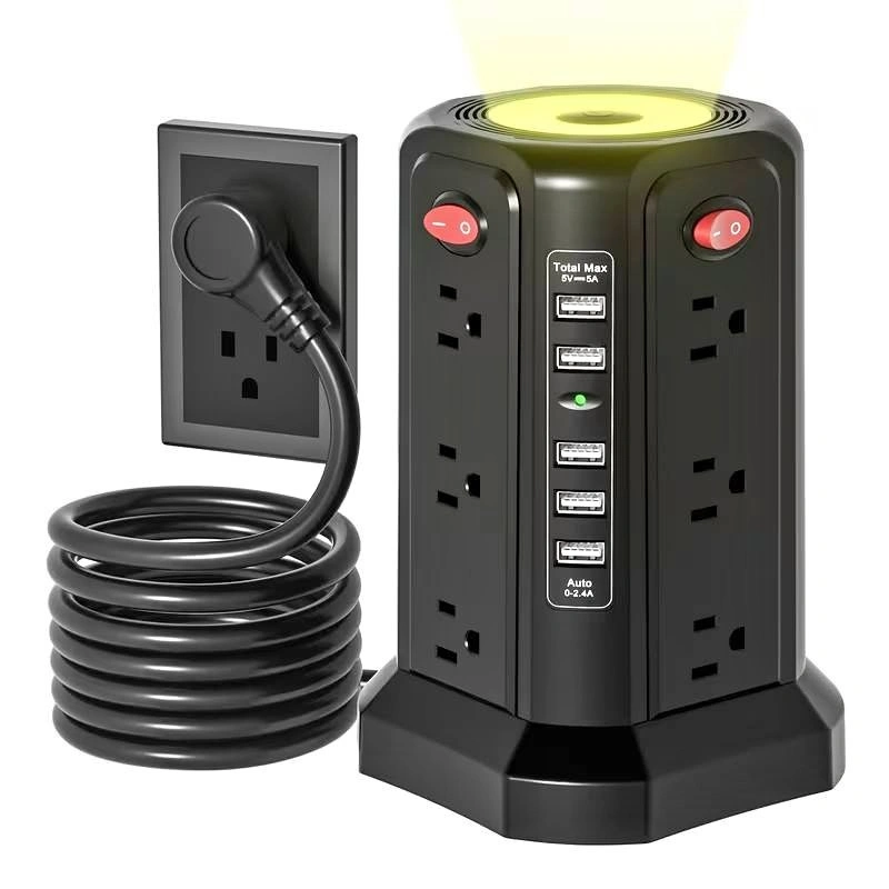 Power all your devices from one convenient hub. Features multiple AC outlets, 5 USB ports with PD18W/20W fast charging, and a long 10ft extension cord for flexible placement. Built-in surge protection and a soft night light add extra safety and convenience—perfect for home, office, or dorm use.