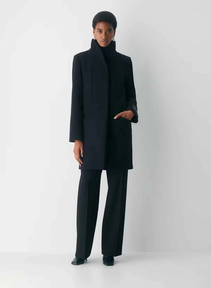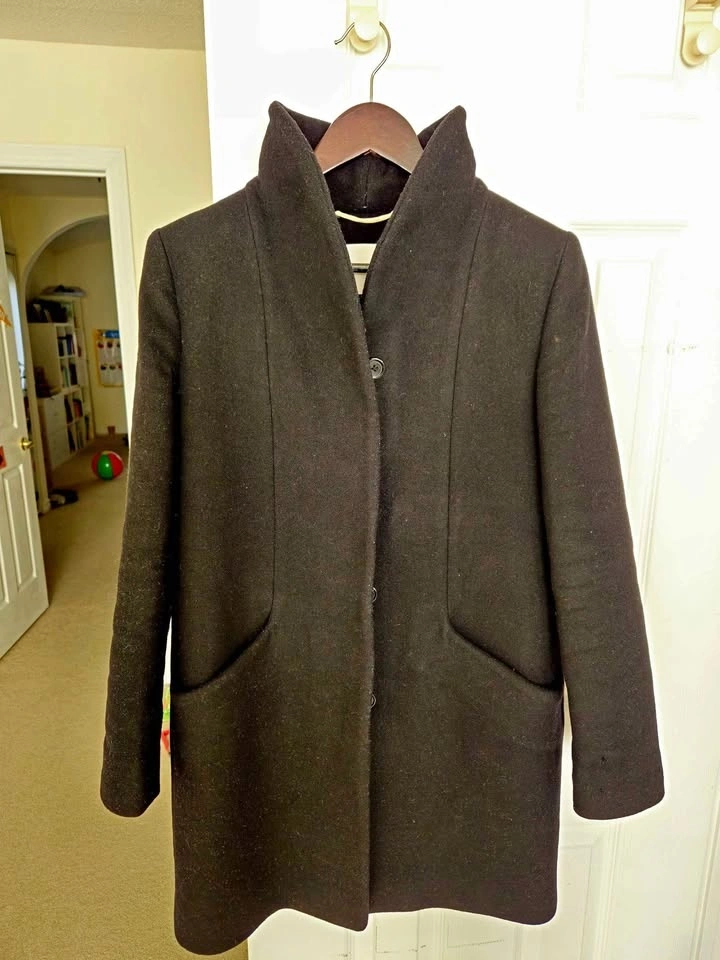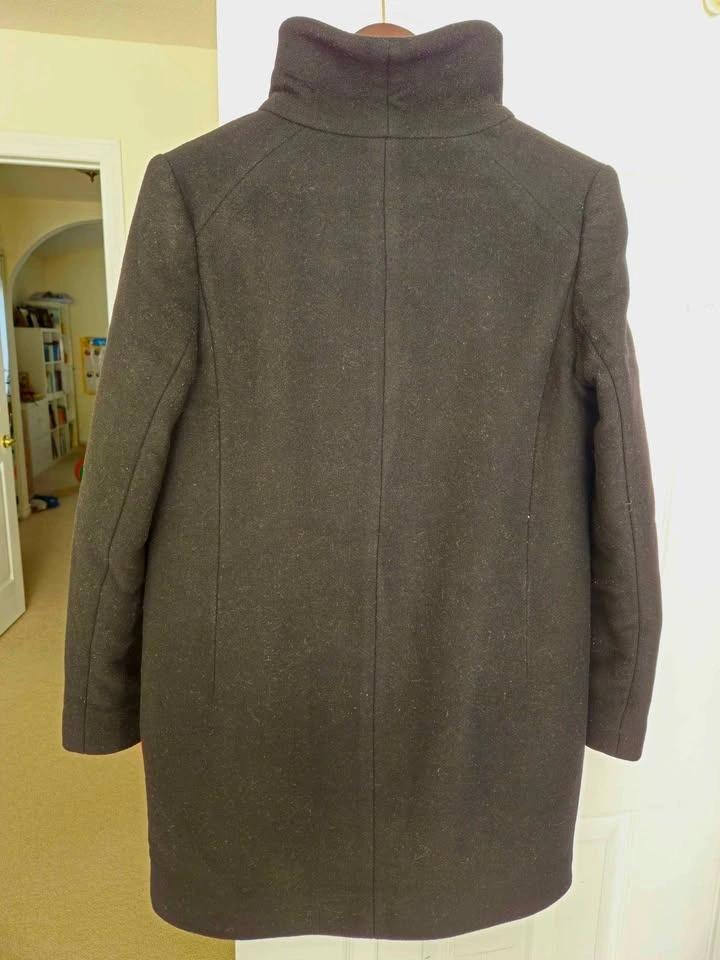 Soft Italian virgin wool and cashmere coat with funnel neck. Label on wrist removed. No marks, tears, stains. From SFPF home.