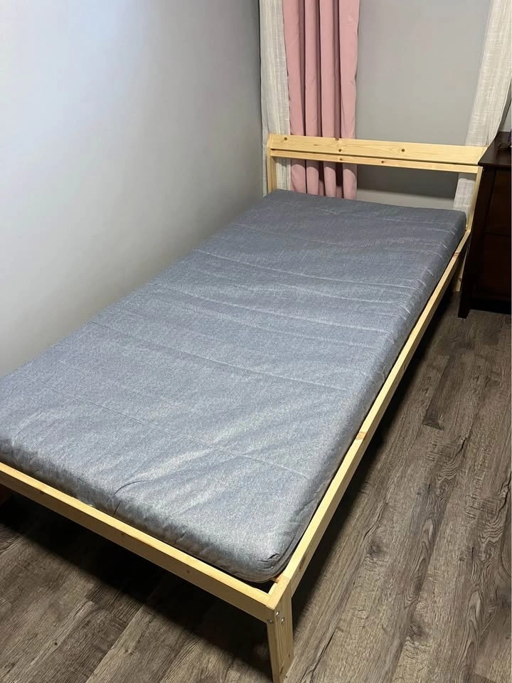 Twin Bed Frame+ Foam mattress for Toddler. Just used for 2 months. From IKEA. Perfect condition like NEW. No stain, no pet hair, it is en perfect conditions. The IKEA price is $210