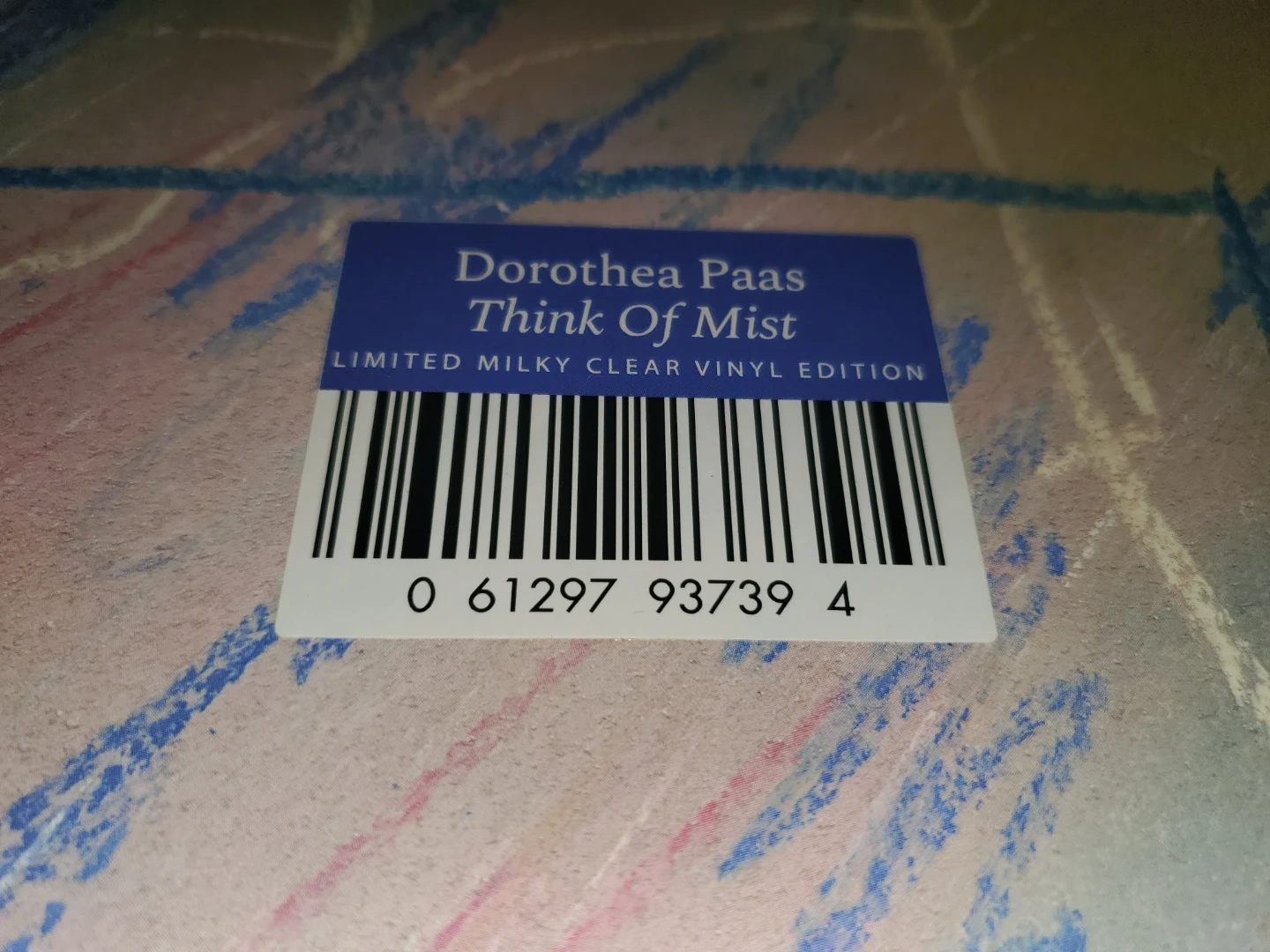 Dorothea Paas 'Think Of Mist' on limited milky clear vinyl. This record features tracks like 'My Hand Creates Ripples on the Surface of the Water', 'Autumn Roses', and 'Locked'. It's part of a limited edition run. Pressed by Telephone Explosion Records.