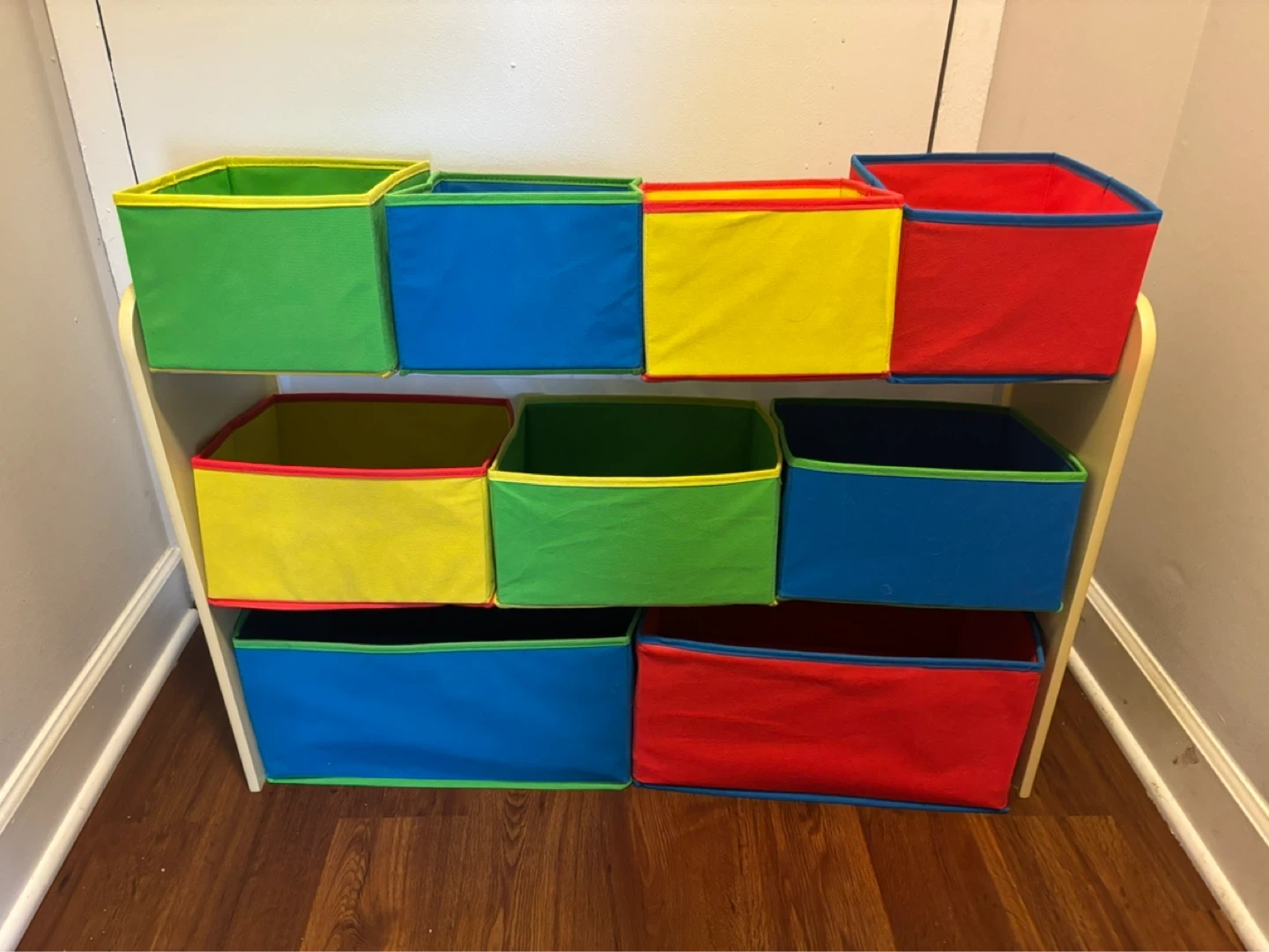 Buy & SellMulticolor Toy Organizer with 9 Fabric BinsMulticolor Toy Organizer with 9 Fabric Bins$20This organizer features 9 colorful fabric bins in red, blue, yellow, and green. It's great for storing toys and kids' items.ConditionGoodWHERE TO MEETCheck LocationView MapSELLERverifiedKateWheaton650 reviews0 chats·0 favorites·2 viewsSEND CHAT TO SELLERHi Kate! I’m interested in your listing.Hi Kate! I’m interested in your listing.Get the Karrot app to chatSign In to chat