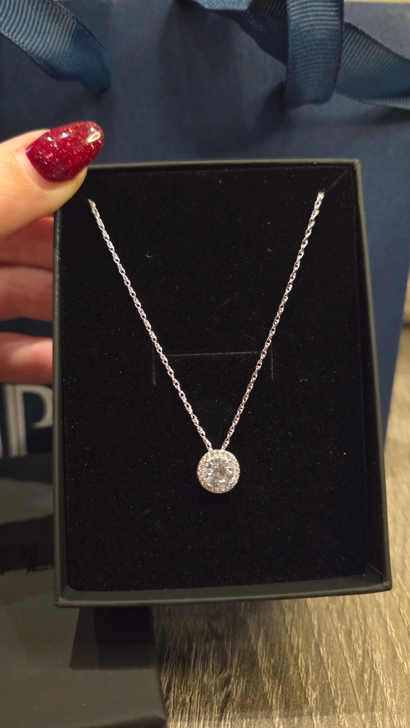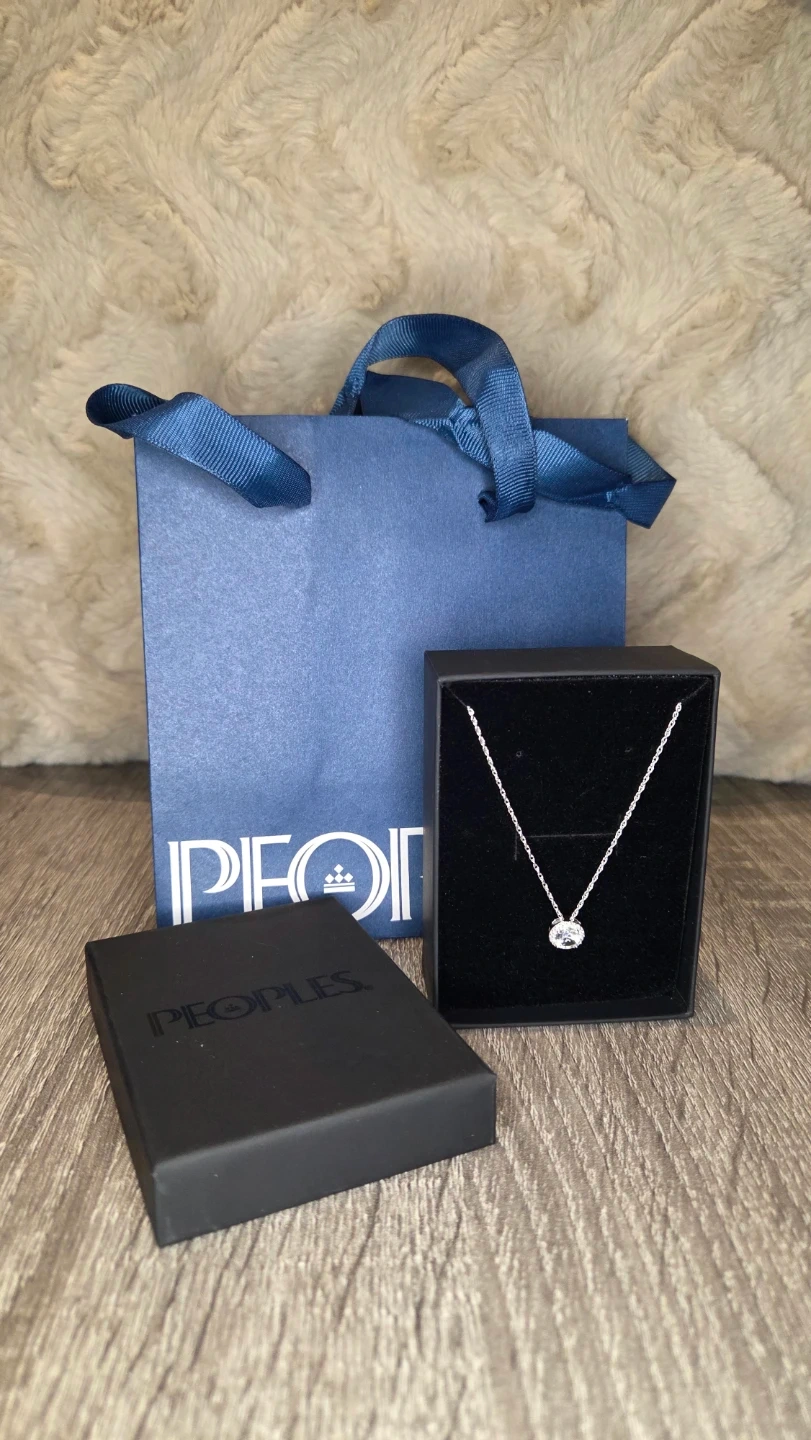 Beautiful lab-created white sapphire sterling silver necklace from Peoples Jewellers. Brand new, never worn, and includes the original box and bag. Regular retail price $129.