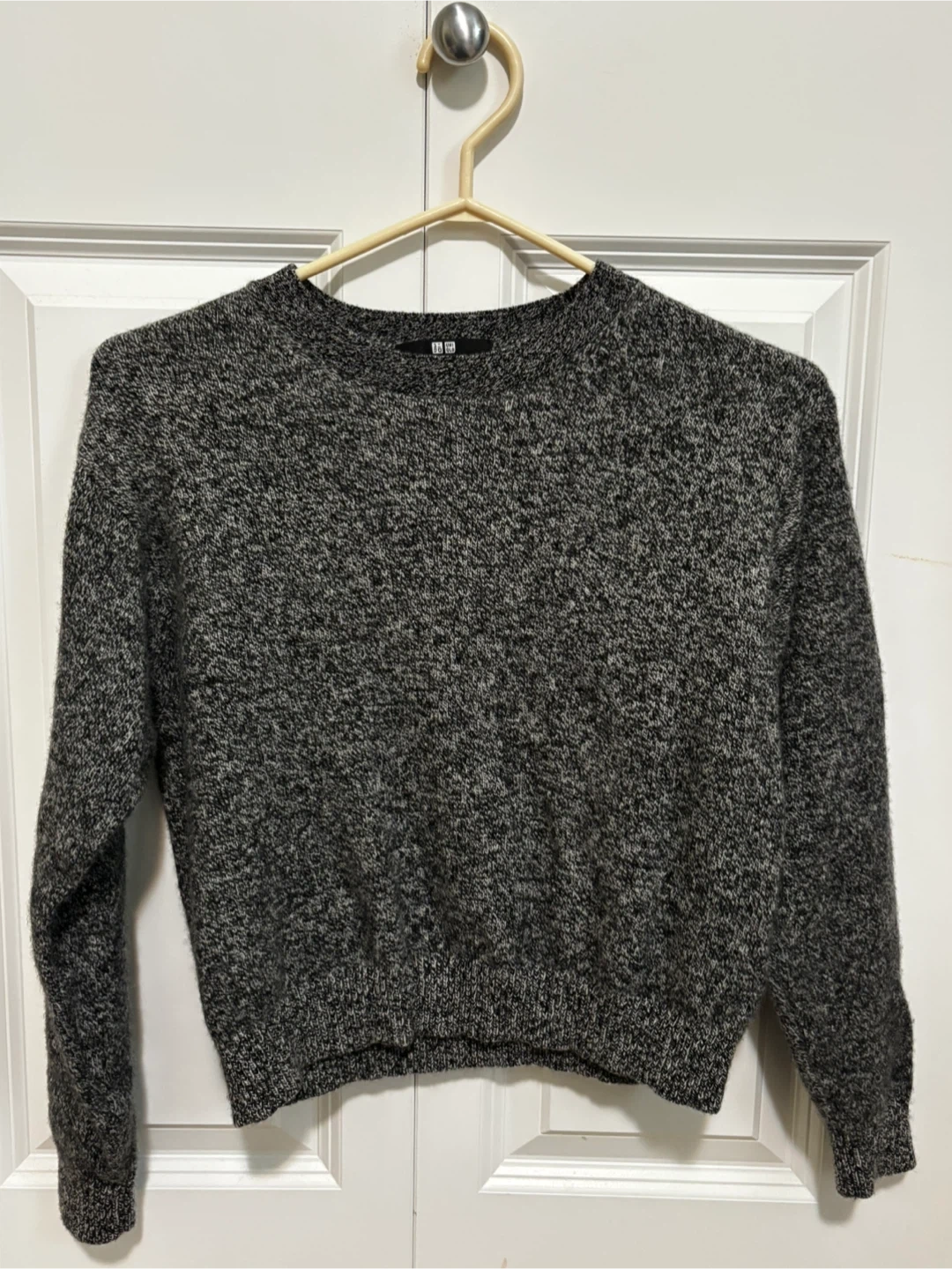 Selling a cozy Uniqlo sweater in size small! It's a grey wool blend, perfect for staying warm. The material is 100% wool and it's in great condition. A great addition to any wardrobe!