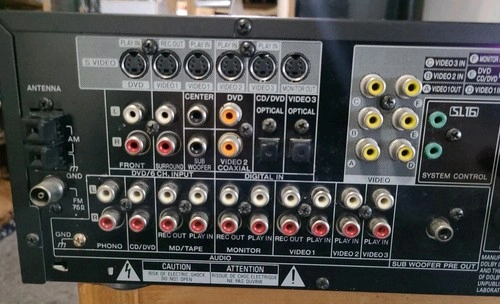 Elevate your home audio experience with the Kenwood VR-407, a powerful 500W Audio-Video AV Receiver that promises clarity and volume. It's a versatile piece of equipment that supports both AM and FM modes, and comes equipped with a digital tuner for precise tuning. The sleek black design is stylish and ensures it blends seamlessly with your existing home theatre setup. The VR-407 offers an array of audio outputs including banana speaker jacks, raw cable speaker jacks, headphone jack, and stereo L/R RCA, giving you flexibility in connecting your sound system. With 5.1 channel support and multiple audio inputs like AUX and stereo L/R RCA, this home theatre receiver is designed to cater to a comprehensive audio experience. The included remote ensures ease of use, allowing you to control your audio settings from the comfort of your sofa. Remote missing battery door.