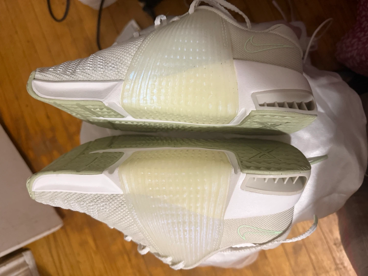 These are white women’s metcon training shoes size US 8.5, UK 6, EUR 40, and CM 25.5. Made in Vietnam. They're great for workout and for gym