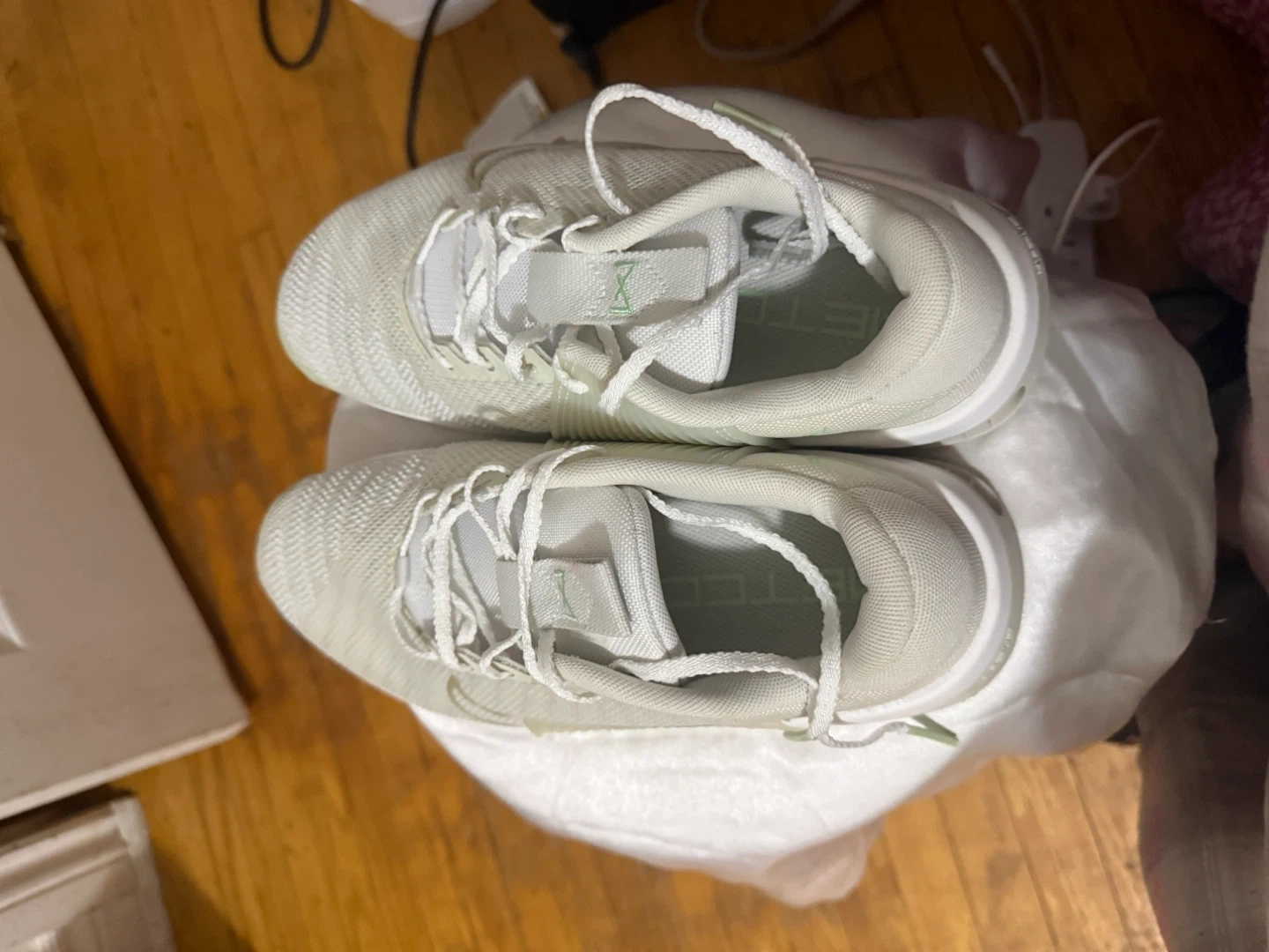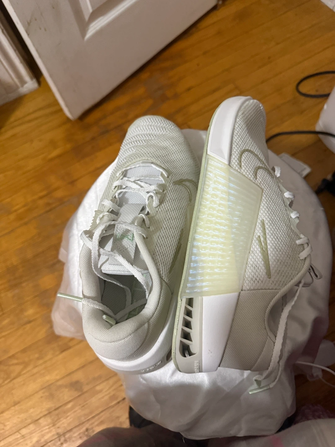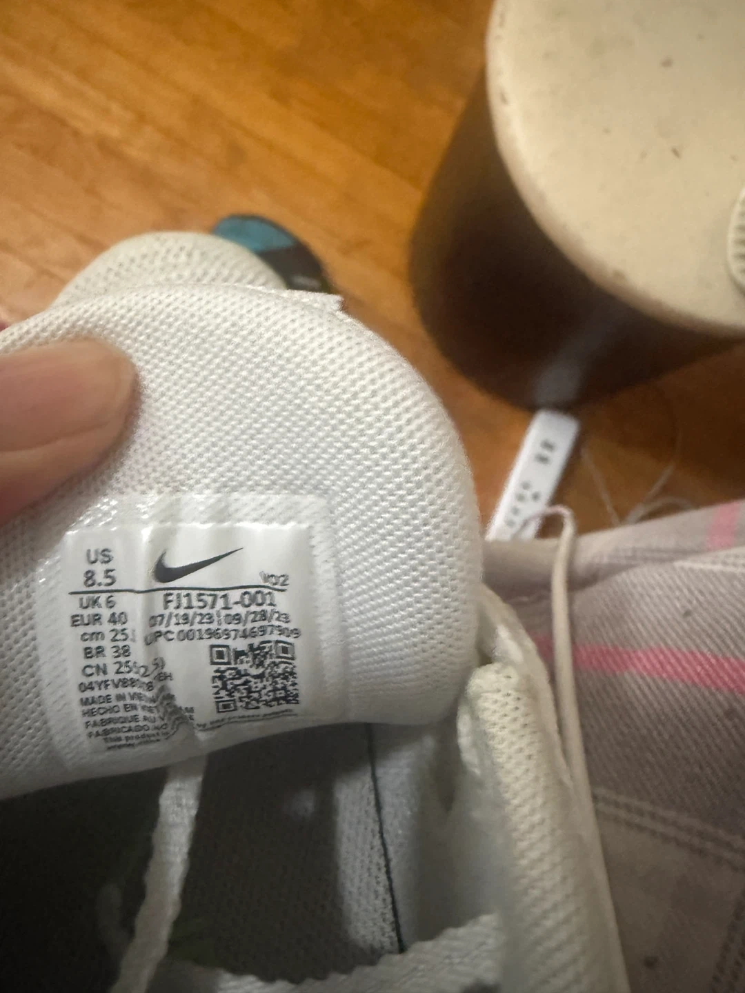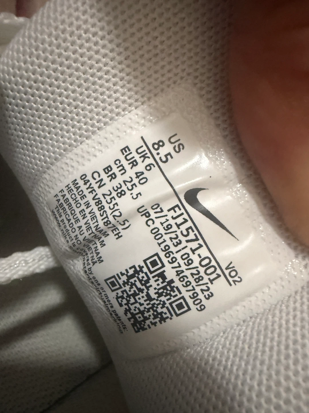 These are white women’s metcon training shoes size US 8.5, UK 6, EUR 40, and CM 25.5. Made in Vietnam. They're great for workout and for gym