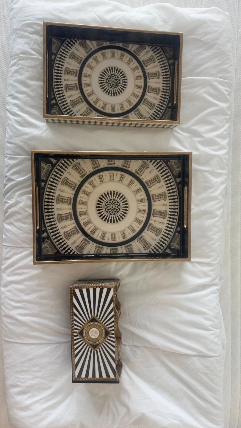 Nested beautiful wooden tray set with cutlery stand