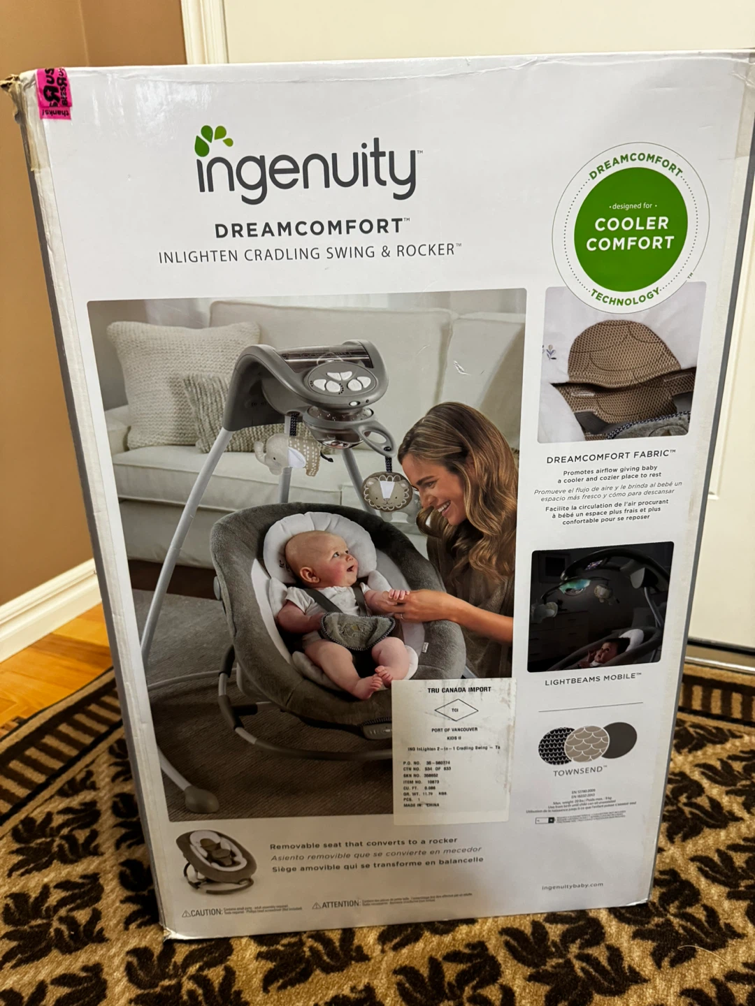Selling an Ingenuity DreamComfort Inlighten Cradling Swing & Rocker! It features DreamComfort fabric and lightbeams mobile technology. The removable seat converts to a rocker. It’s Practical Brand New. Pickup in Cranston SE. No Delivery.