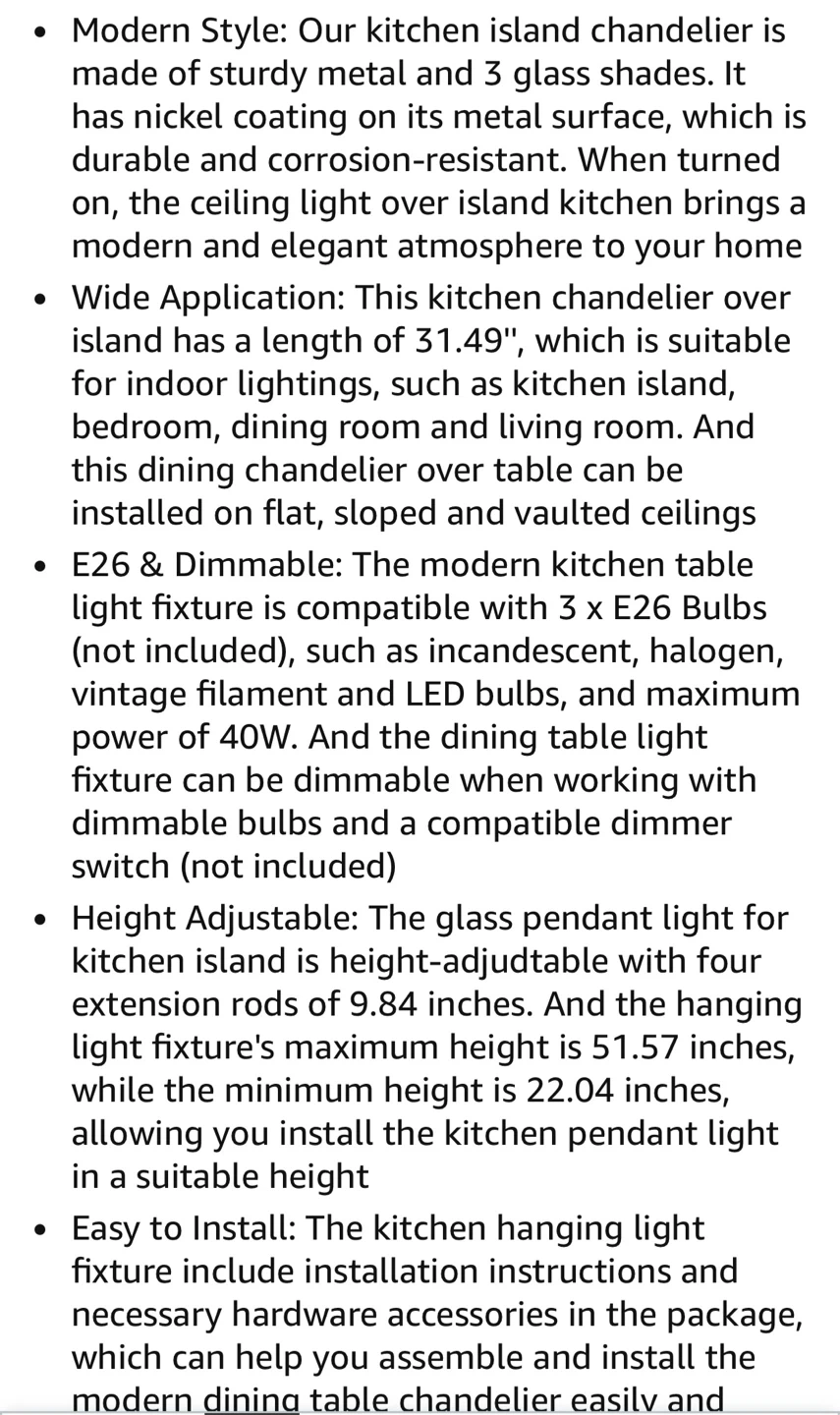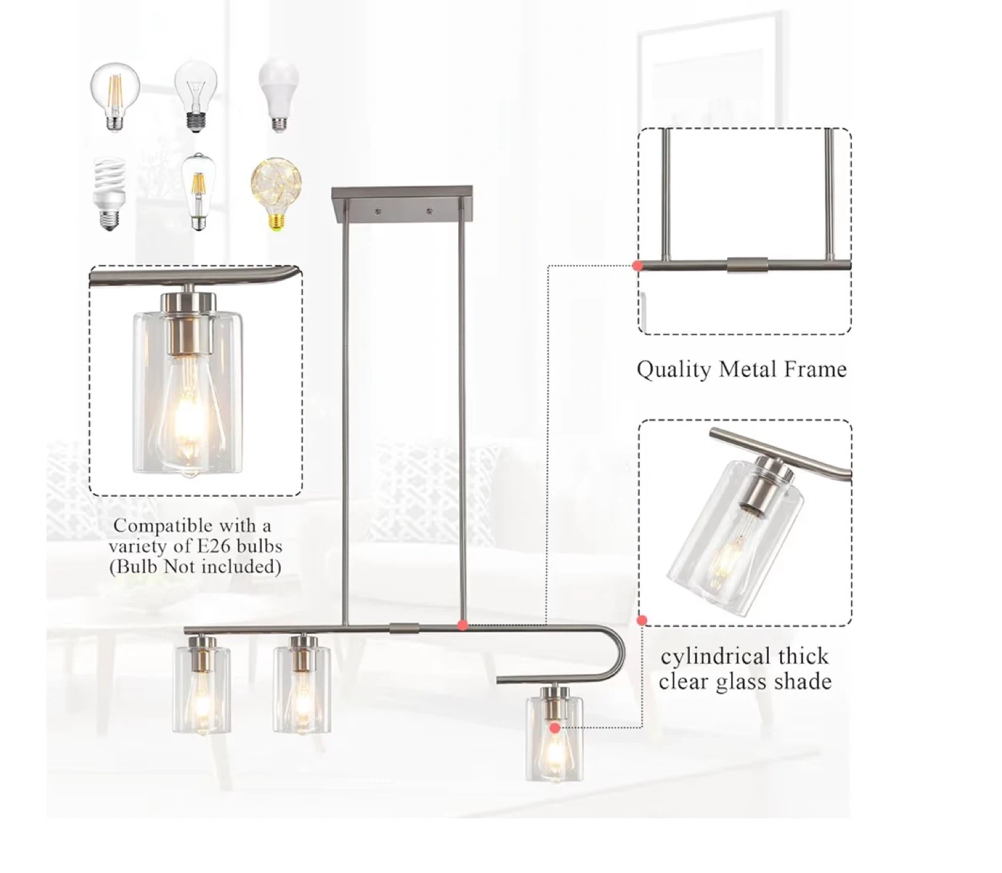 Dining Room Light Fixture Over Table 3-Light Modern Chandelier Pendant Lighting for Dining Table Entryway Island Living Room