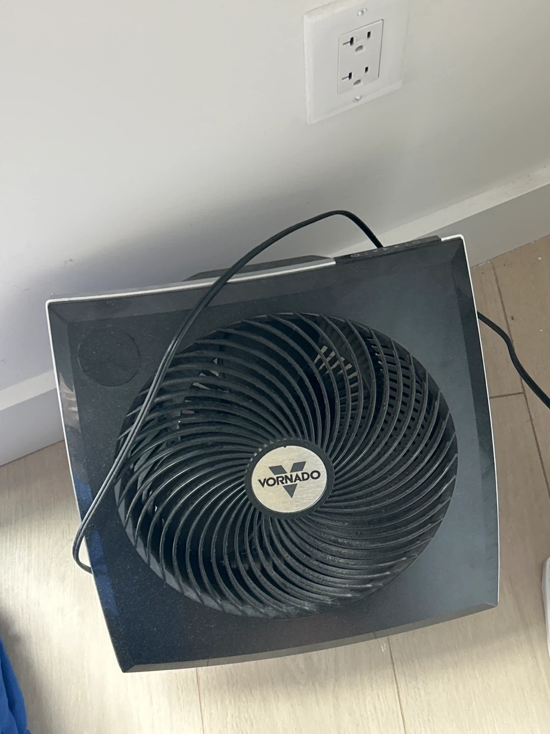 This Vornado air circulator fan moves air effectively. It's designed to circulate air throughout a room. Black plastic construction.