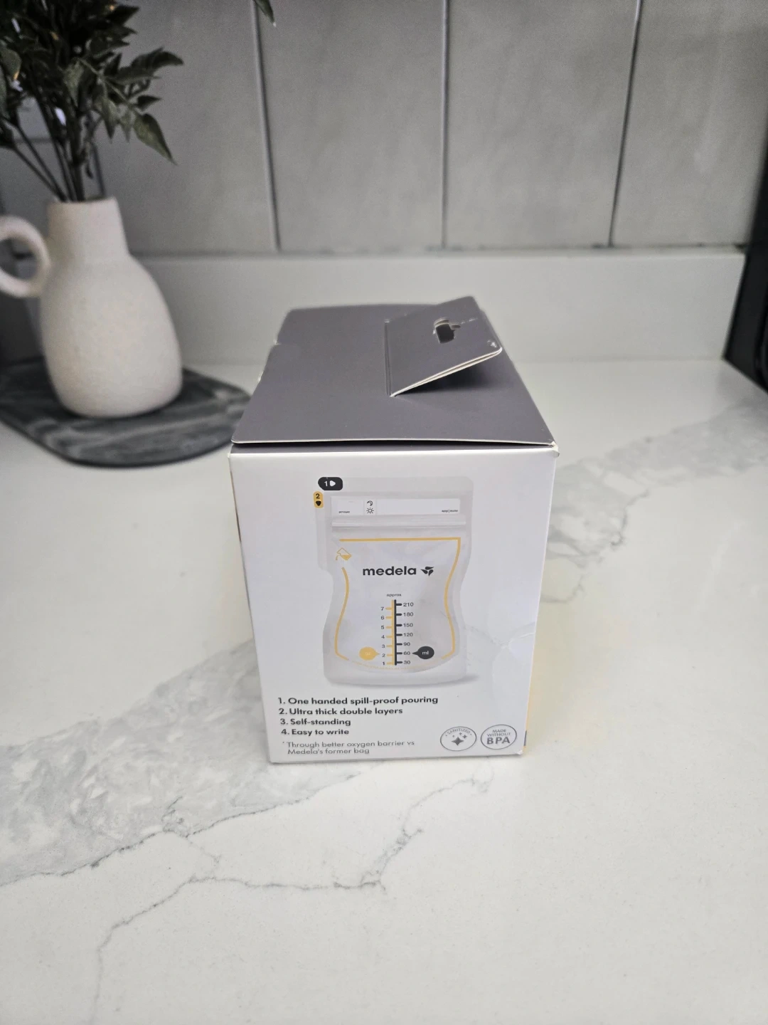 Medela Easy Pour Breast Milk Storage Bags. Includes 100 bags. These bags offer no leaks and 10x better protection for breast milk. They're also designed for flat freezing.