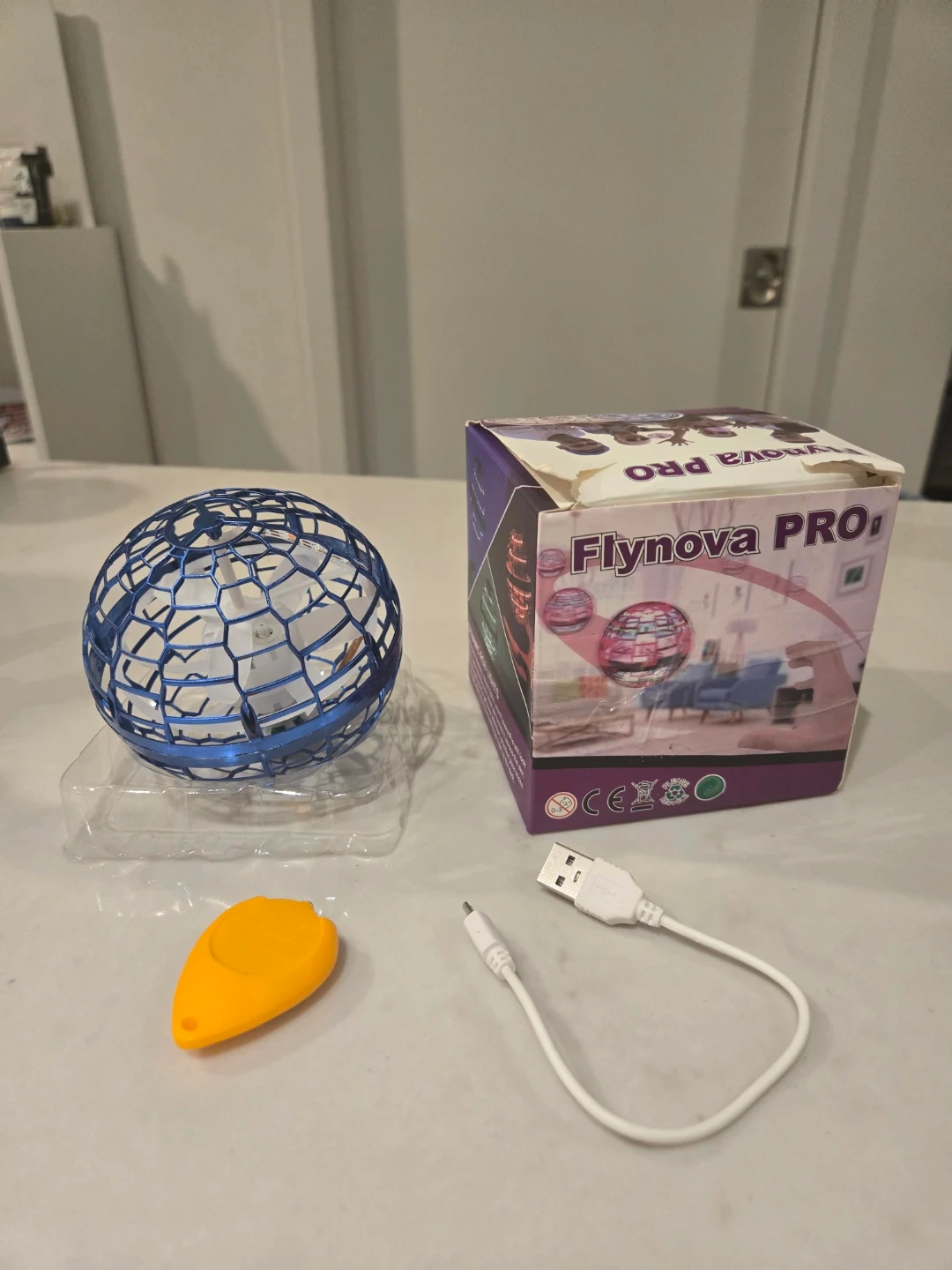 Selling a Flynova PRO flying spinner drone! It comes with the original box, charger, and remote. It's in great condition and ready for some fun!