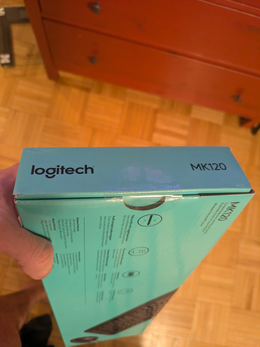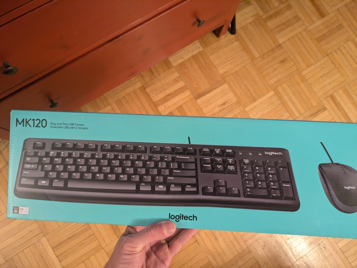 New, unopened Logitech MK120 keyboard and mouse combo. Plug and play USB connection. Wired.