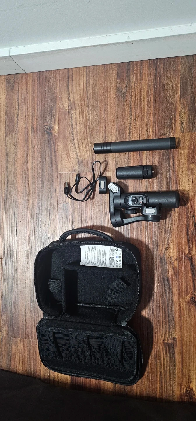 Selling an AOCHUAN gimbal stabilizer. It comes with its original case and looks to be in great condition! Included are the charger and other components as pictured.