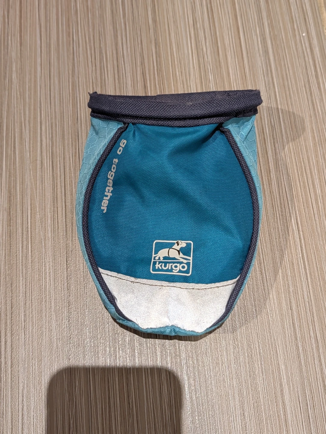 Kurgo treat pouch with a drawstring closure and a clip for attachment.