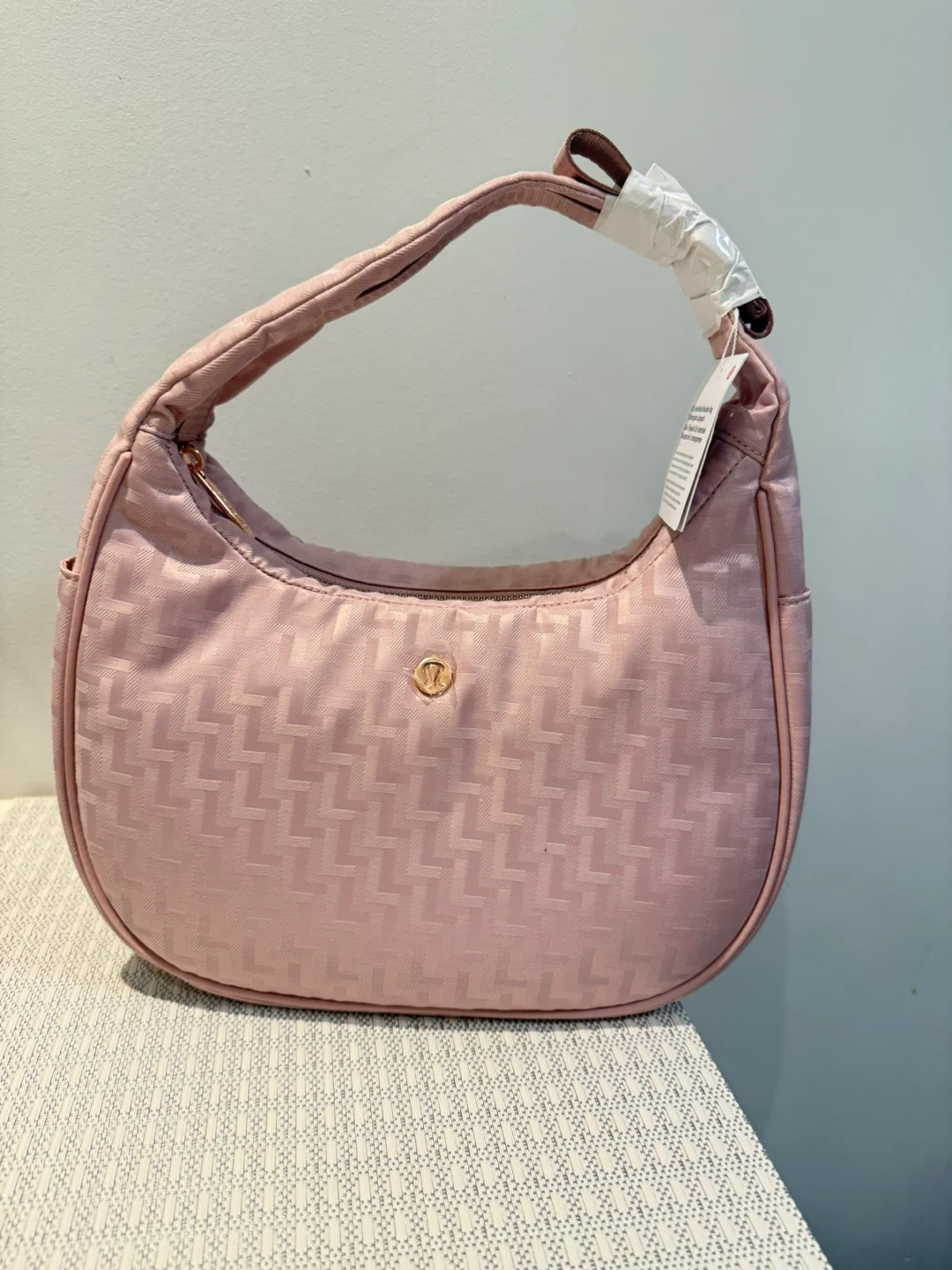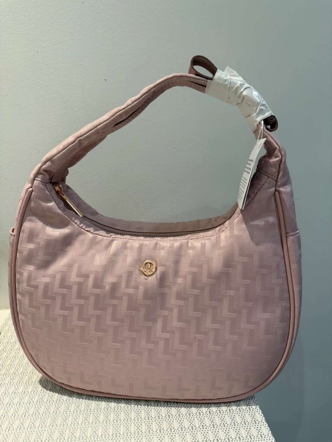 This Lululemon City Essentials Shoulder Bag features a moon-inspired silhouette and an adjustable strap. It's made with a jacquard material in a lovely pink hue. This bag is easy to wear multiple ways, carry it by hand, or adjust the strap for over-the-shoulder or crossbody wear. 4L