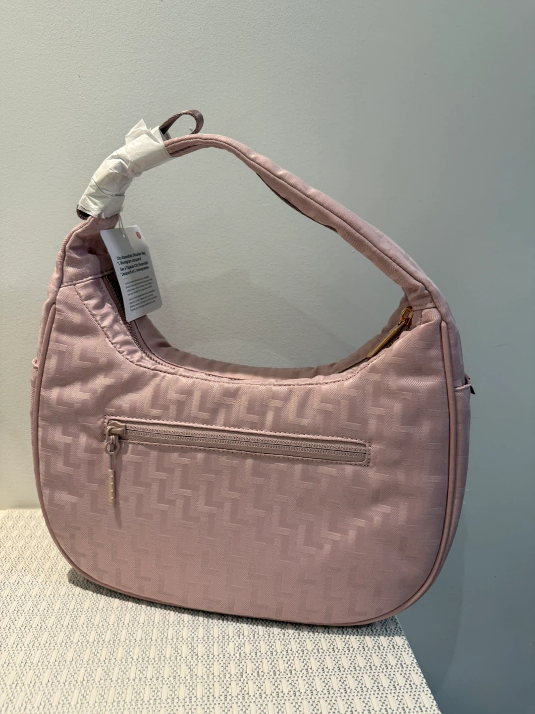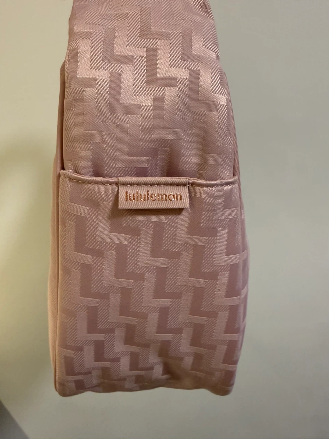This Lululemon City Essentials Shoulder Bag features a moon-inspired silhouette and an adjustable strap. It's made with a jacquard material in a lovely pink hue. This bag is easy to wear multiple ways, carry it by hand, or adjust the strap for over-the-shoulder or crossbody wear. 4L