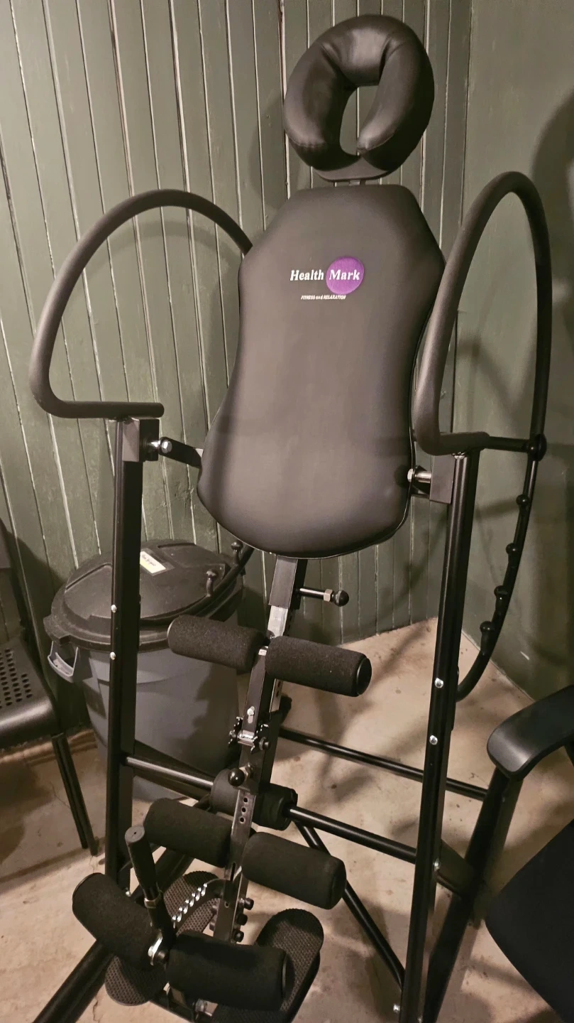 This is a Health Mark Chiropractic Grade inversion table. It features comfortable padded headrest and ankle supports. It's designed for decompressing the spine and relieving back pressure. Weight Up to 600 Pounds