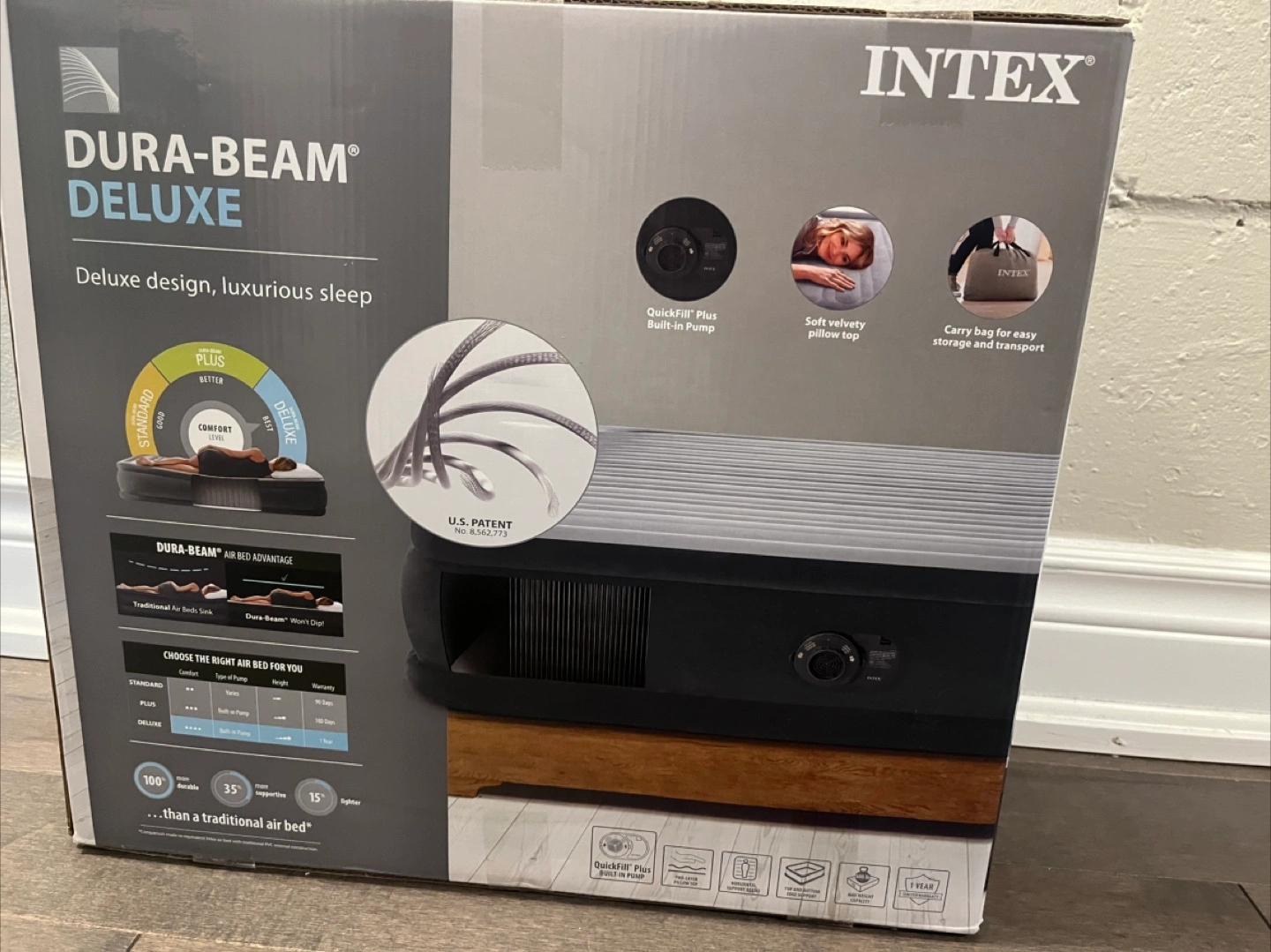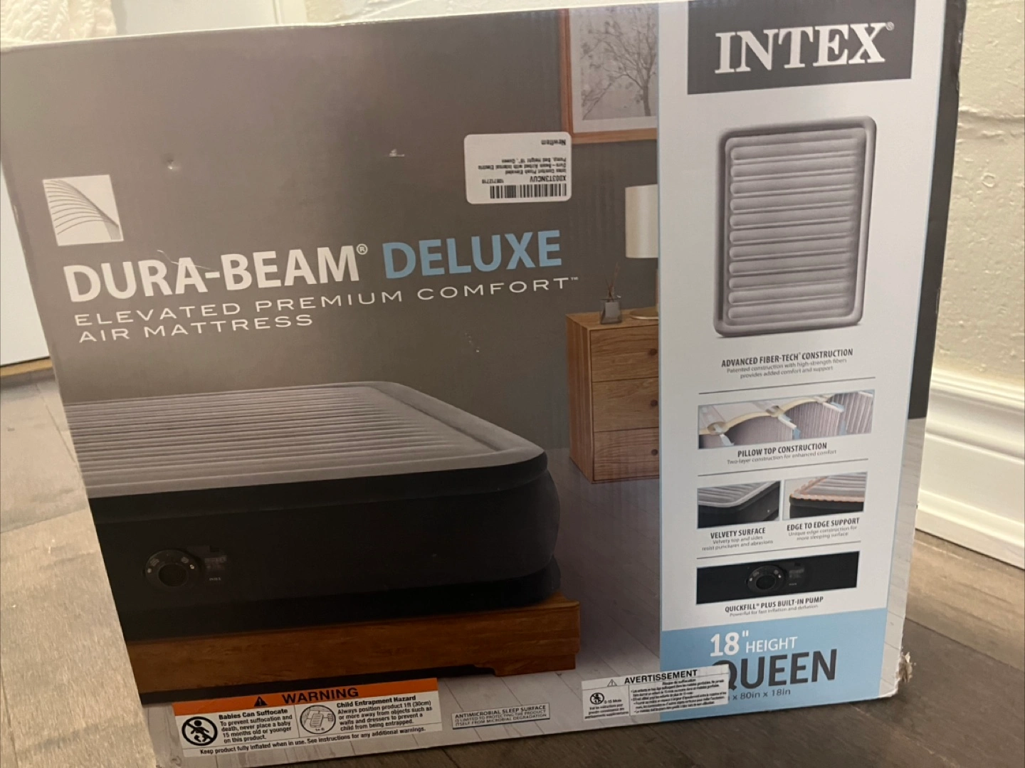 It’s still in the box brand new. Never used it. I have had it in storage. Smoke free home. Queen size easy to use, electric pump. You plug it in and it inflates. Serious inquiries only. Bought it for $83.00.