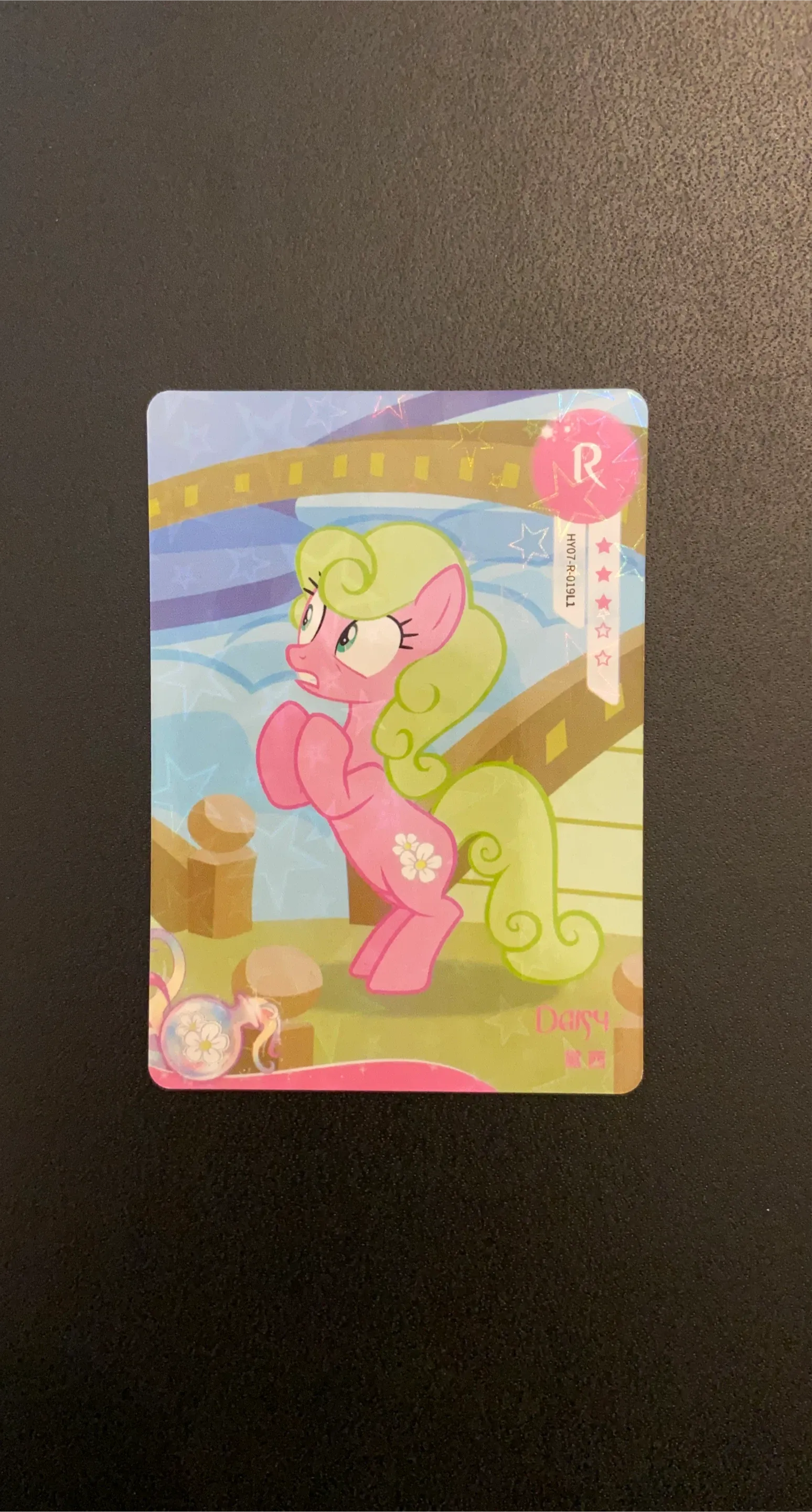 This is a My Little Pony collectible card featuring Daisy. It's a rare "R" card with the code HY07-R-01911. Perfect for My Little Pony collectors!