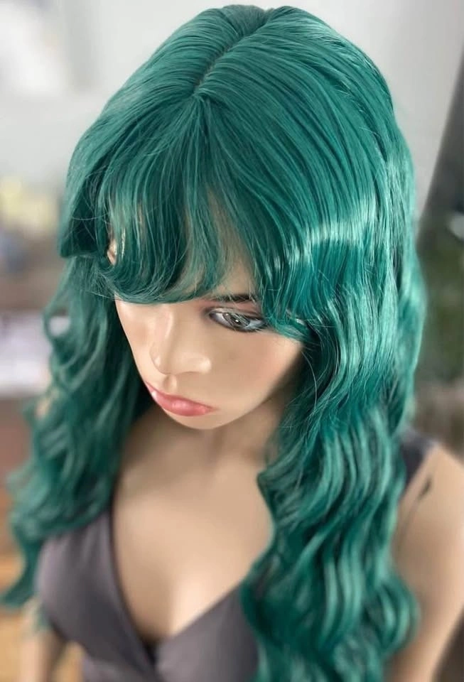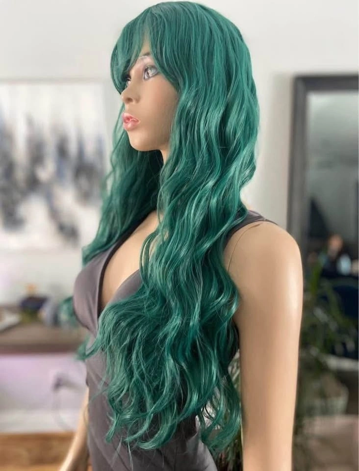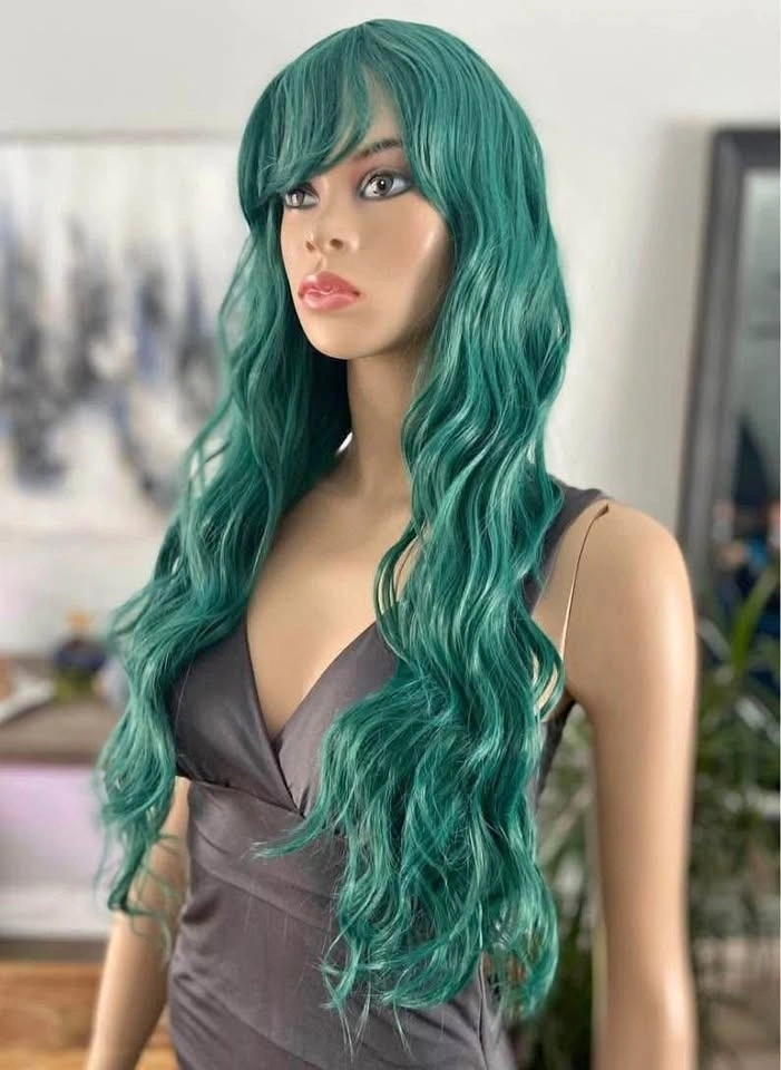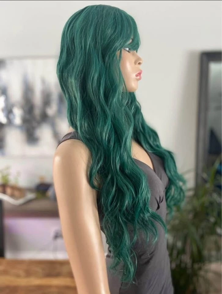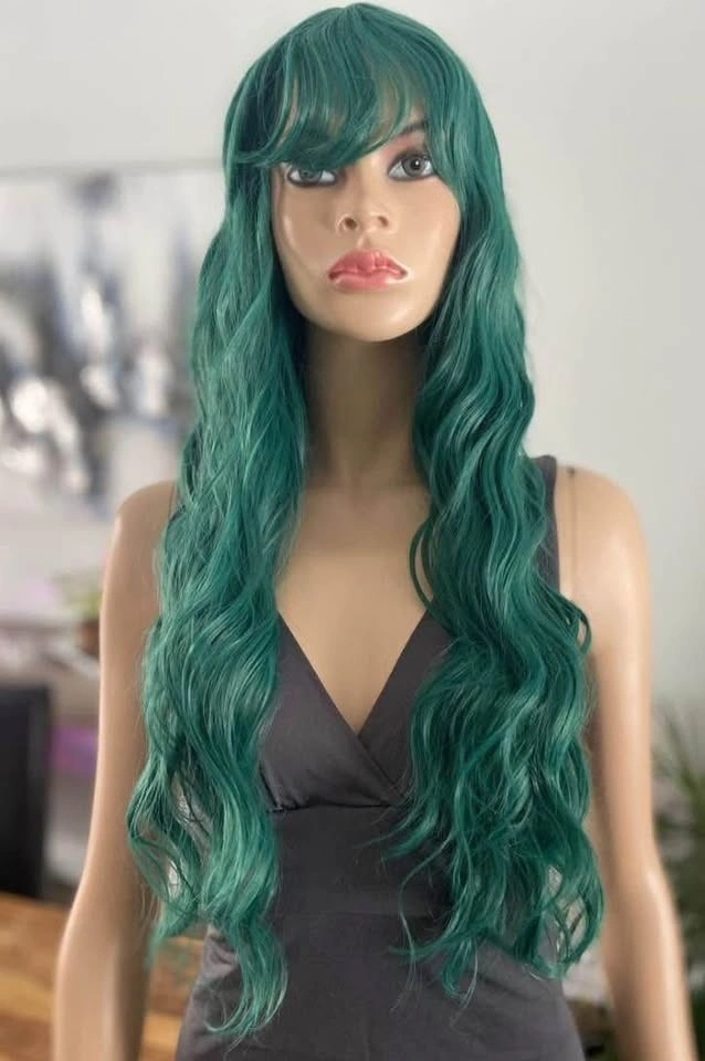 NWOT: 26” Long Wavy/Curly Solid Green Synthetic Wig with Bangs (2258)