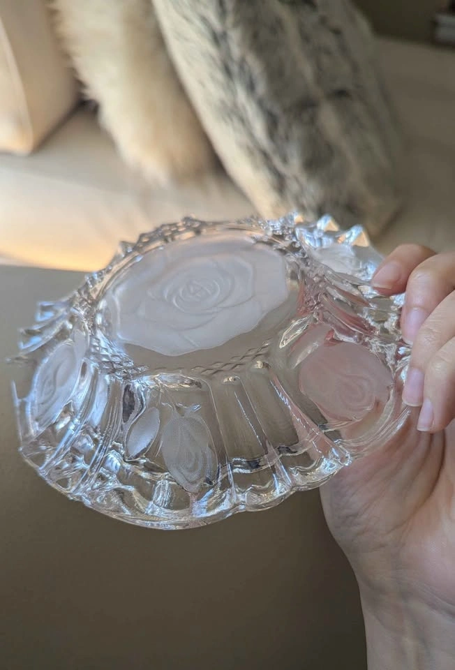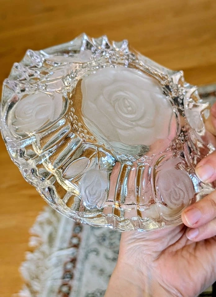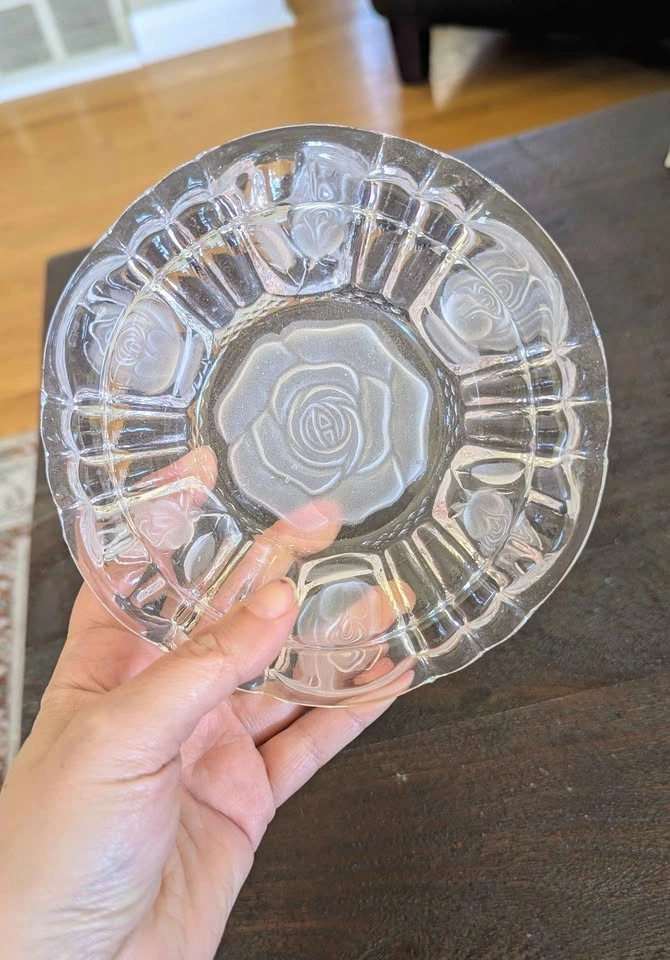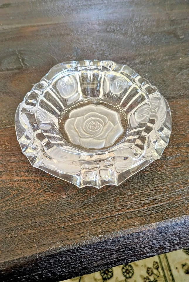 Vintage Pressed Glass Rose Dish / Ashtray ๐น