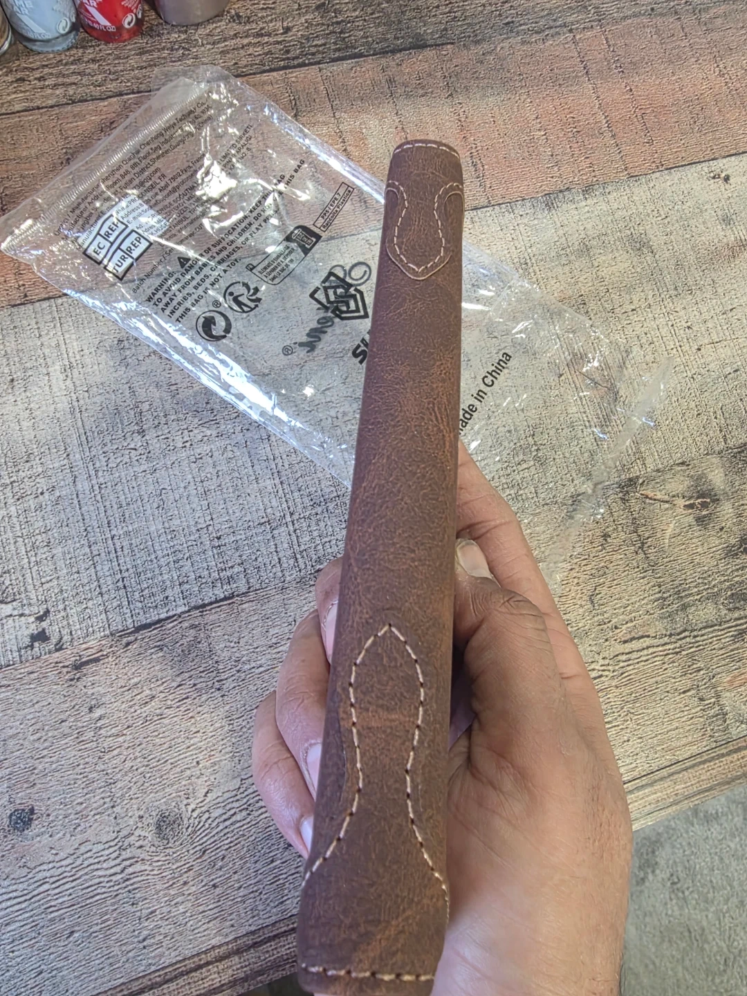 It's a stylish brown leather and has a magnetic closure.