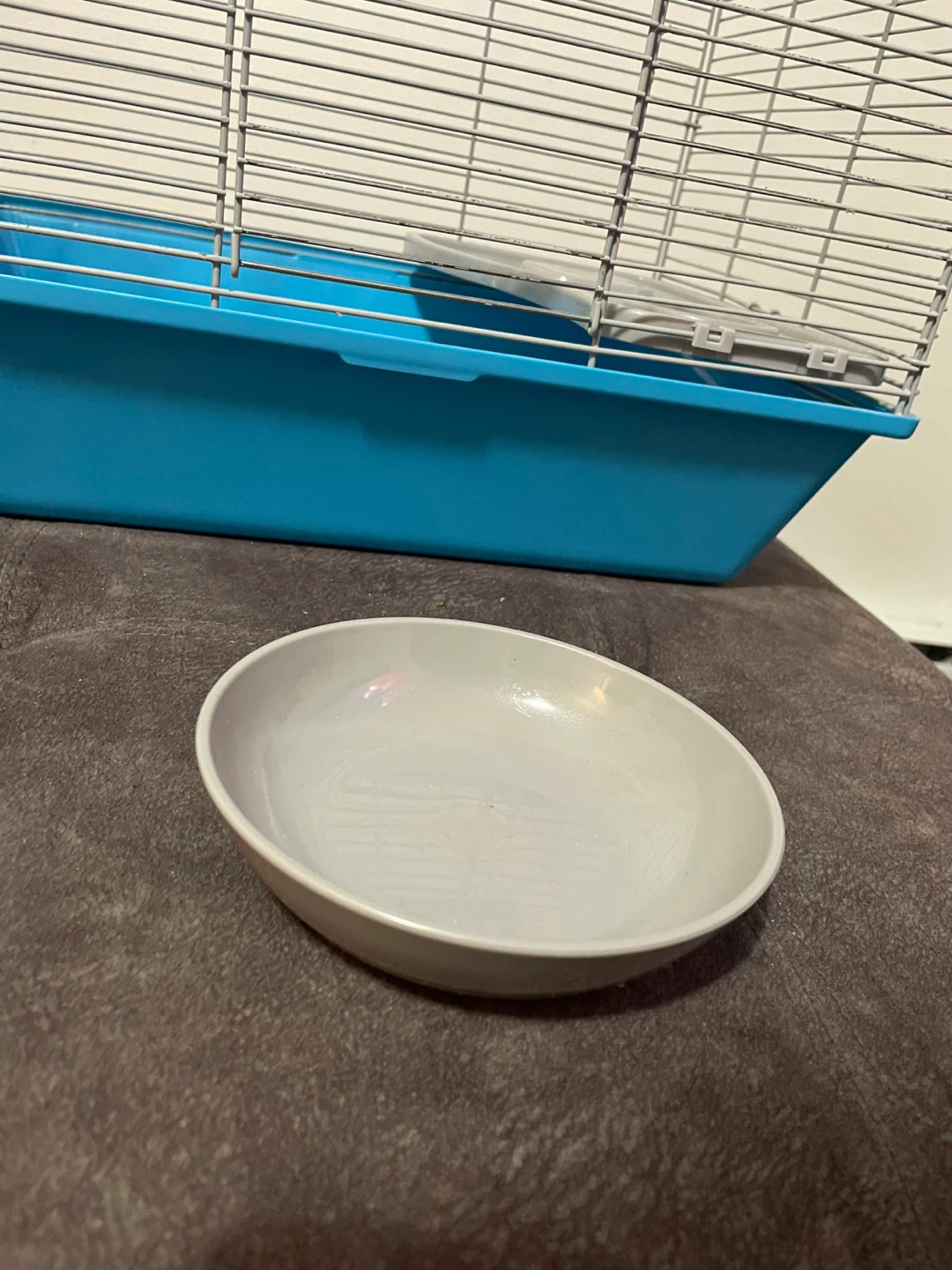 This is an All Living Things medium sized hamster cage. It comes with a blue base, wire top, food bowl, and a red hideout. The cage and the hide have a little damage, the bowl is brand new. Includes a ladder and a removable level. Perfect for your little friend🐹