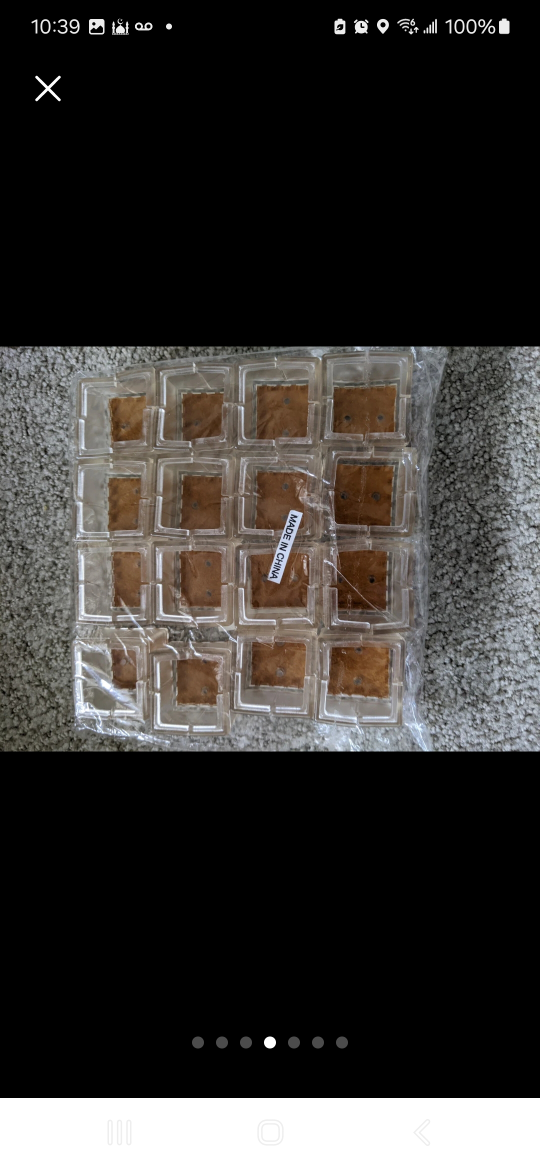 Set of 16 clear plastic furniture feet pads. Each pad features a brown felt bottom. Approximately 1 inch square. Protect floors from scratches.