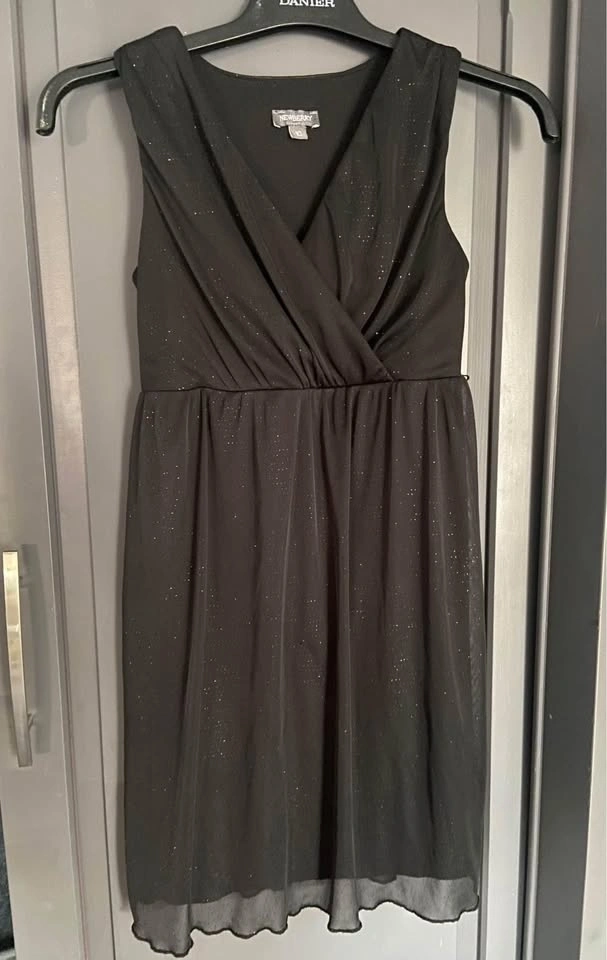 EUC, from a smoke-free home. Size 10 years. Black sparkly glitter dress, sleeveless. Belt loops for a small thin belt if desired. Pick up in the north end of St. Catharines.