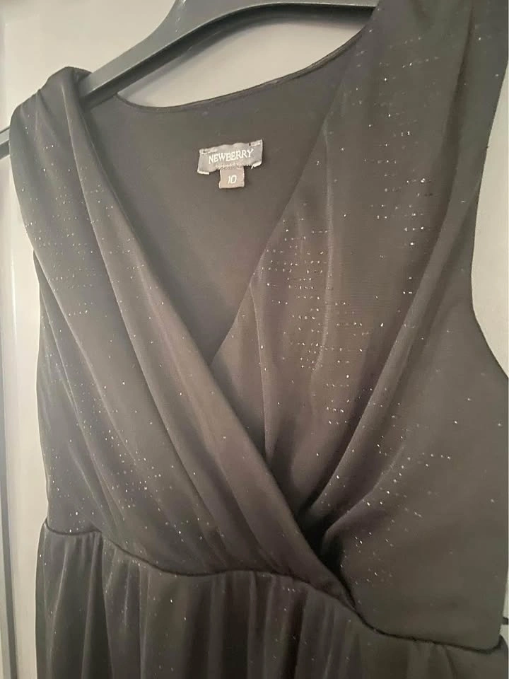 EUC, from a smoke-free home. Size 10 years. Black sparkly glitter dress, sleeveless. Belt loops for a small thin belt if desired. Pick up in the north end of St. Catharines.
