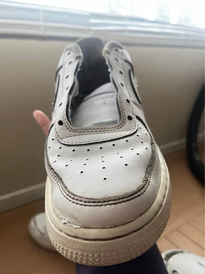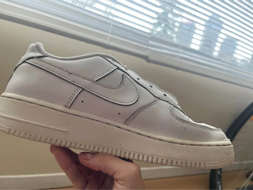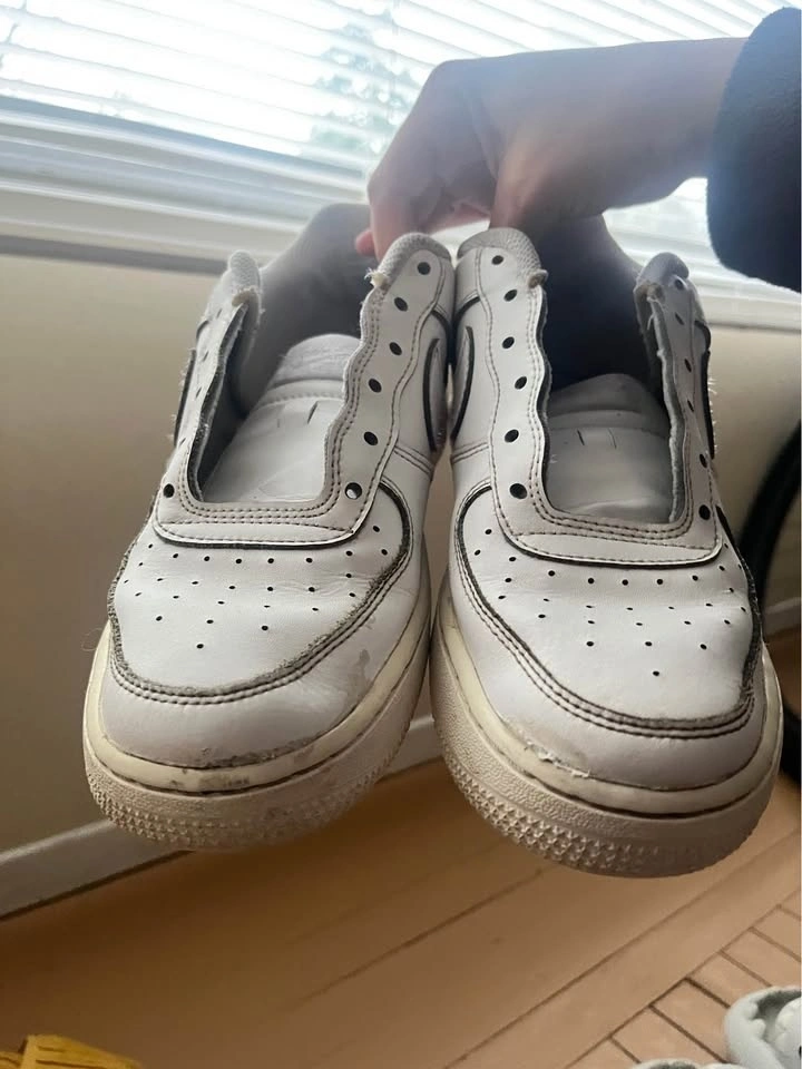 White Nike Air sneakers in size 7–7.5, in good condition. They have been worn and show small marks from normal use, which is reflected in the price. They still have a lot of life left and are perfect for someone looking for comfortable, stylish everyday sneakers at a great price. They do come with laces; I removed them because I washed the shoes. Pick up near Metrotown.