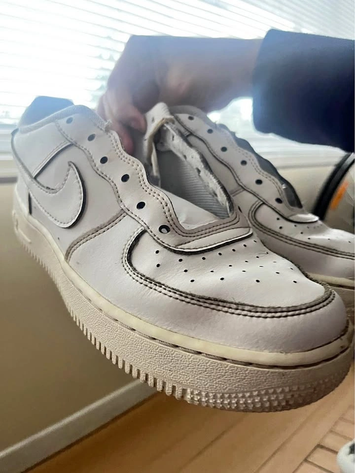 White Nike Air sneakers in size 7–7.5, in good condition. They have been worn and show small marks from normal use, which is reflected in the price. They still have a lot of life left and are perfect for someone looking for comfortable, stylish everyday sneakers at a great price. They do come with laces; I removed them because I washed the shoes. Pick up near Metrotown.