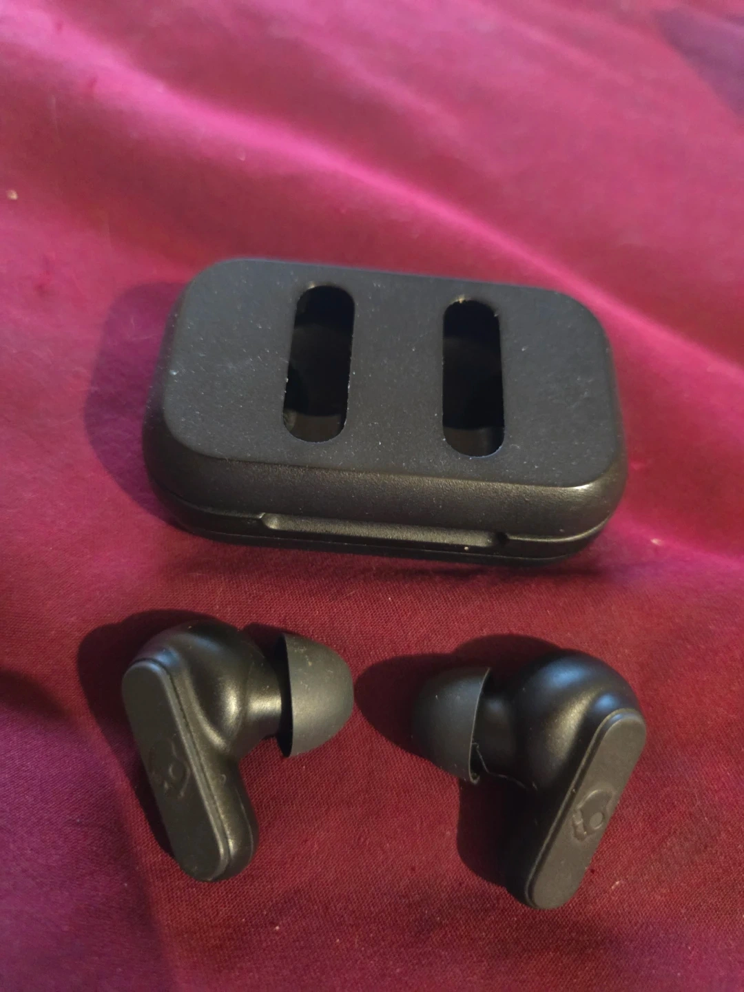 Selling a pair of Skullcandy Dime 2 true wireless earbuds in black. They are in great condition and come with the charging case. Perfect for everyday use and on the go!
