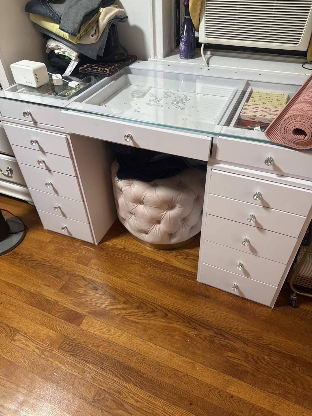 White Bar Cart with Glass Shelves