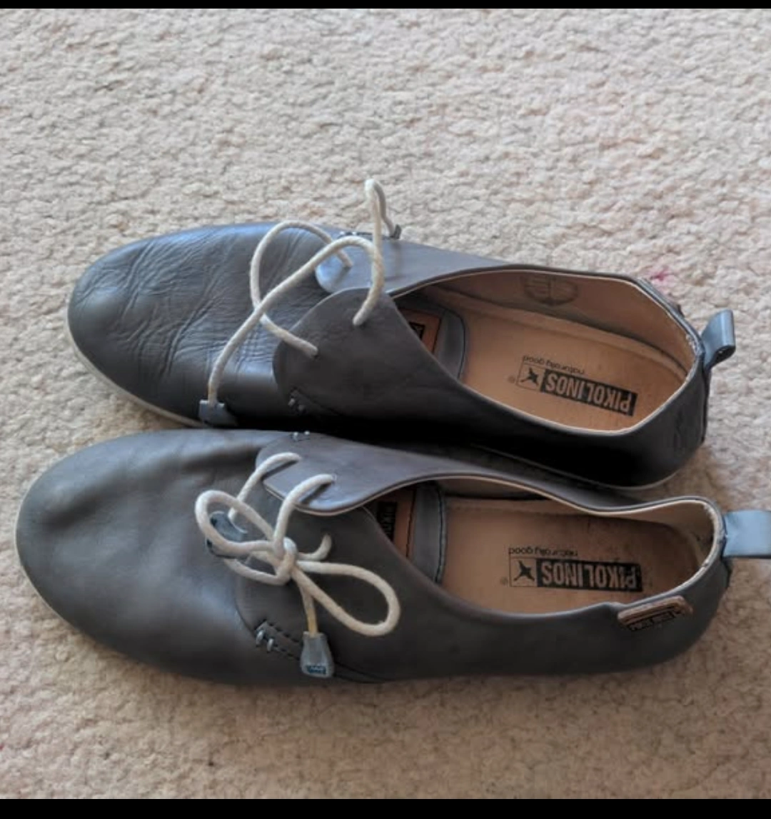 Pikolinos leather shoes in a dark grey colour. Size 40 EU. These shoes are a comfortable slip-on style with laces. Originally purchased for casual wear.