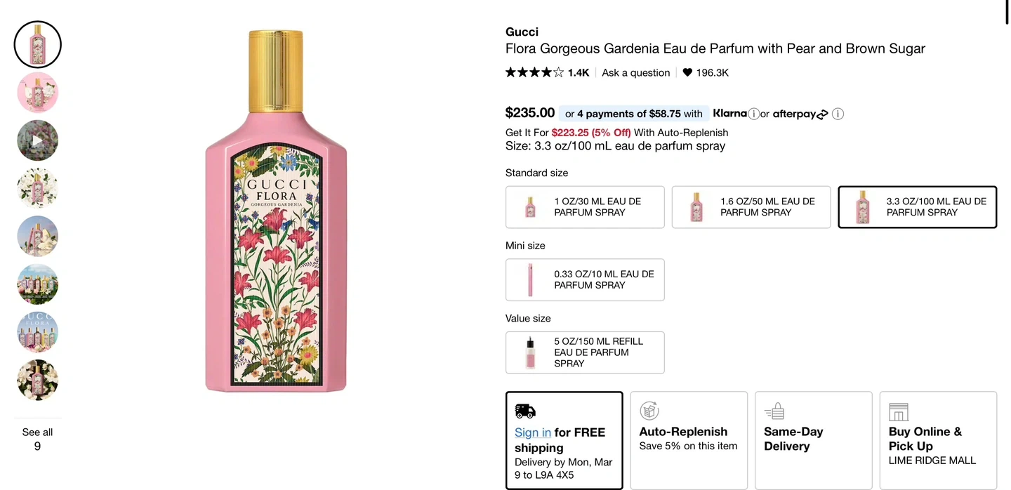 Gucci Flora Gorgeous Gardenia Eau de Parfum 3.3 oz