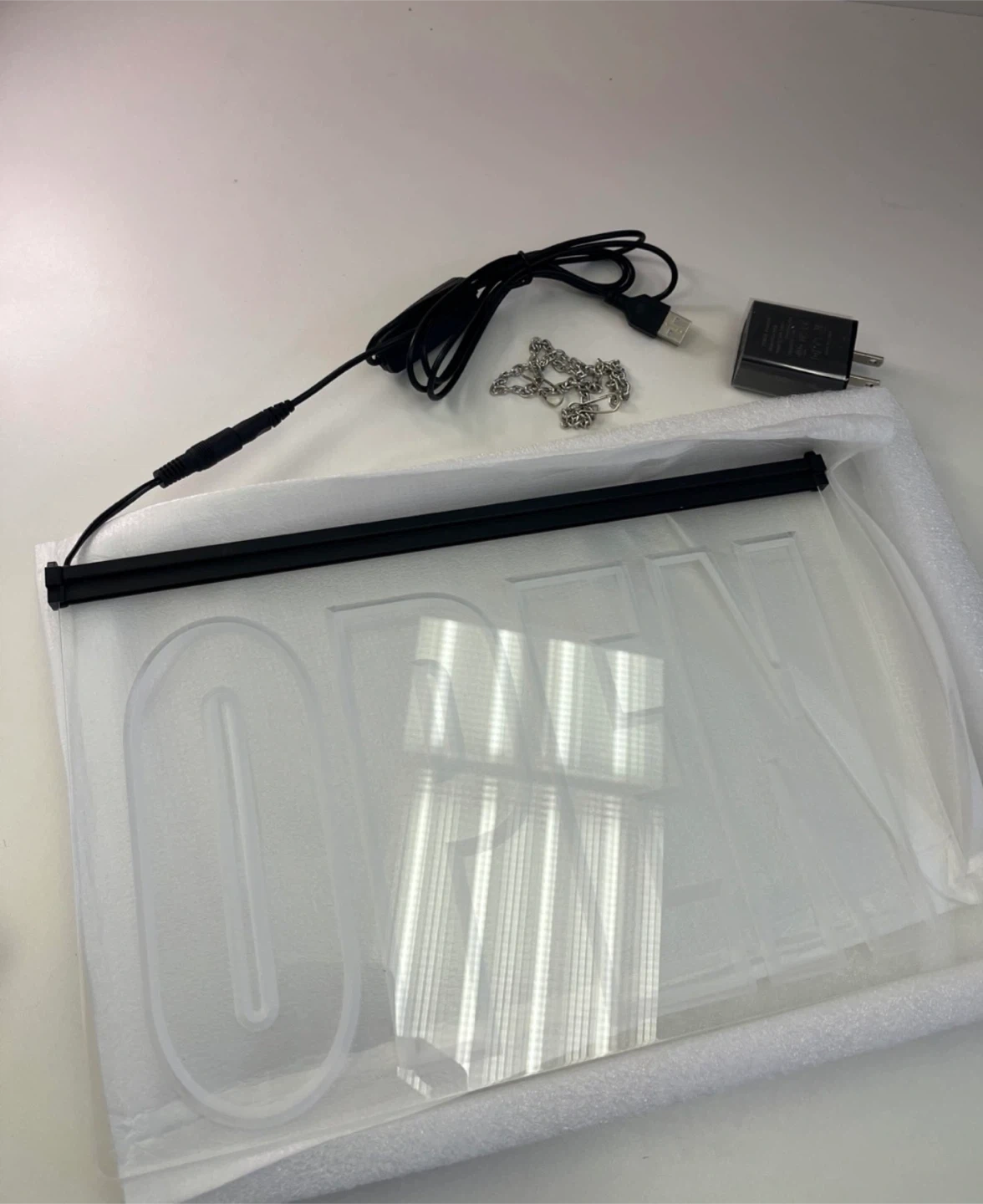 OPEN Sign with Power Adapter and Chain