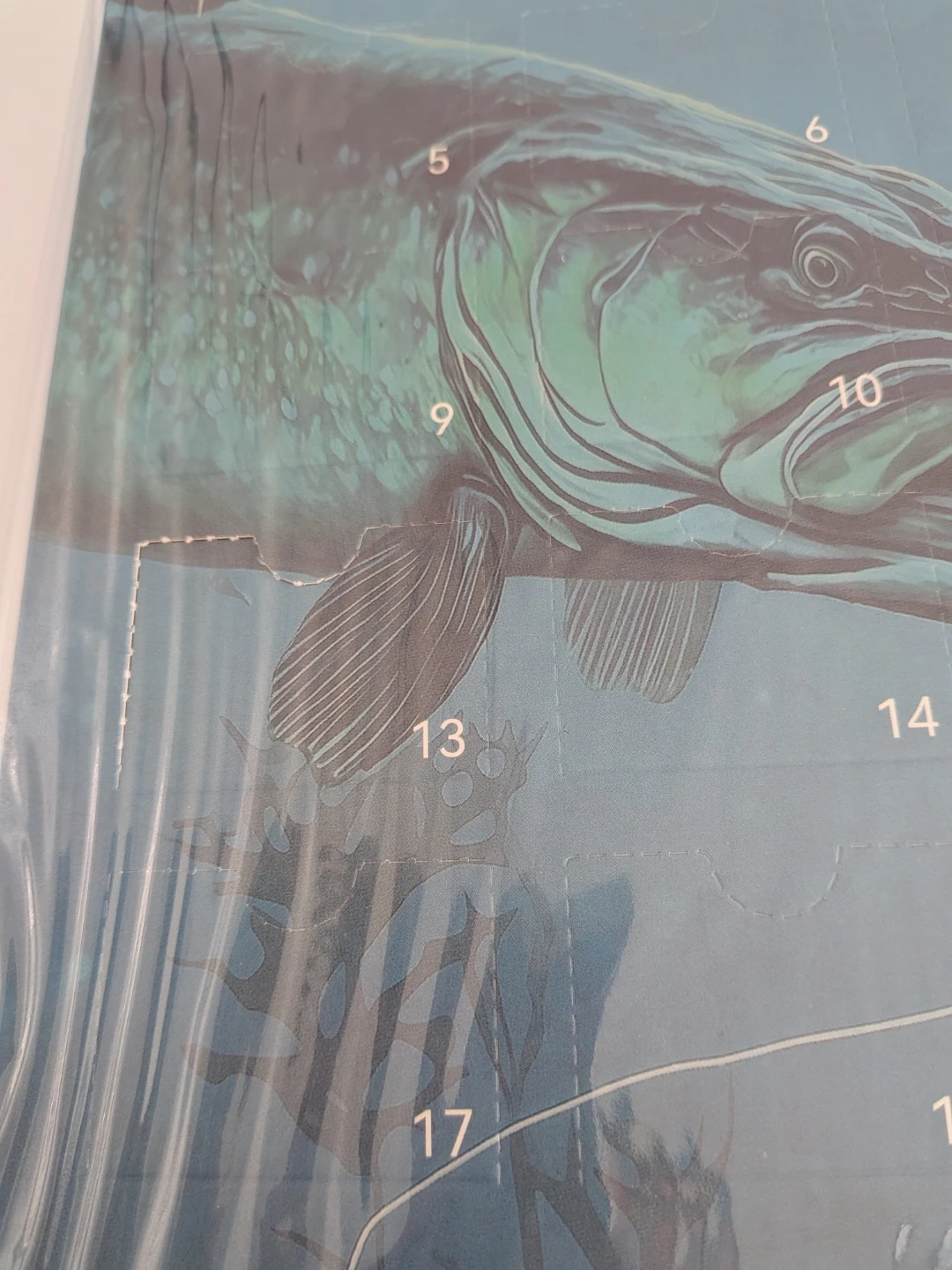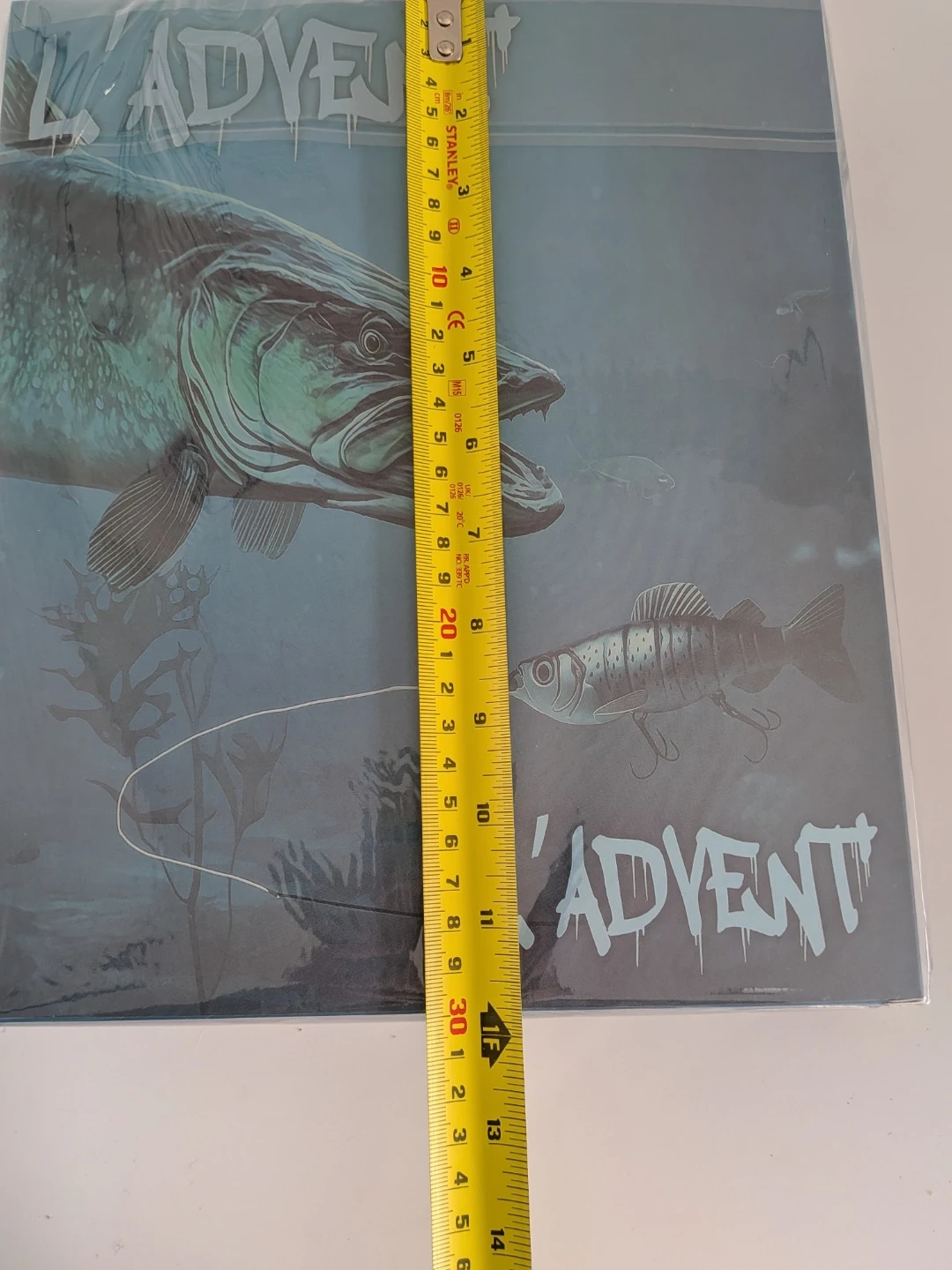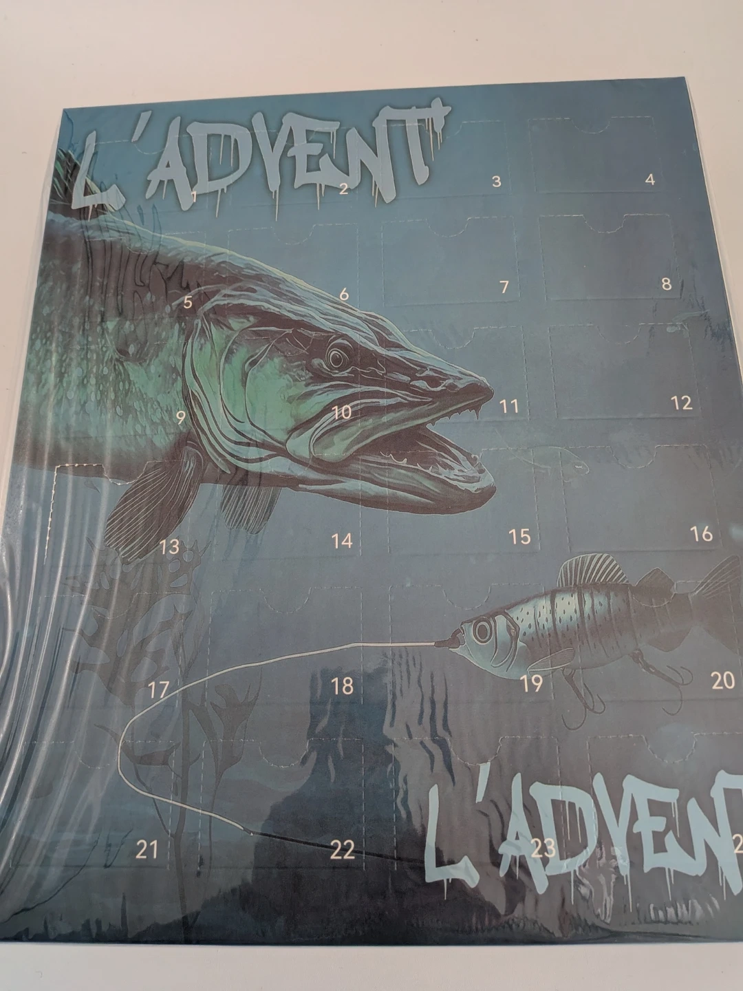 This is the L'ADVENT advent calendar featuring a fishing theme. It has 24 doors to open, marking the days leading up to Christmas. This calendar would be fun for anglers or anyone who enjoys the outdoors!