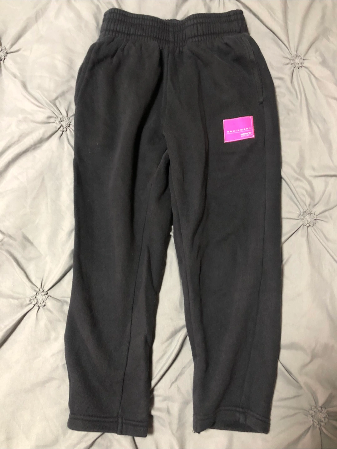 Black Adidas Equipment joggers. Elastic waistband. Pink Equipment label. Size 6-7 years.