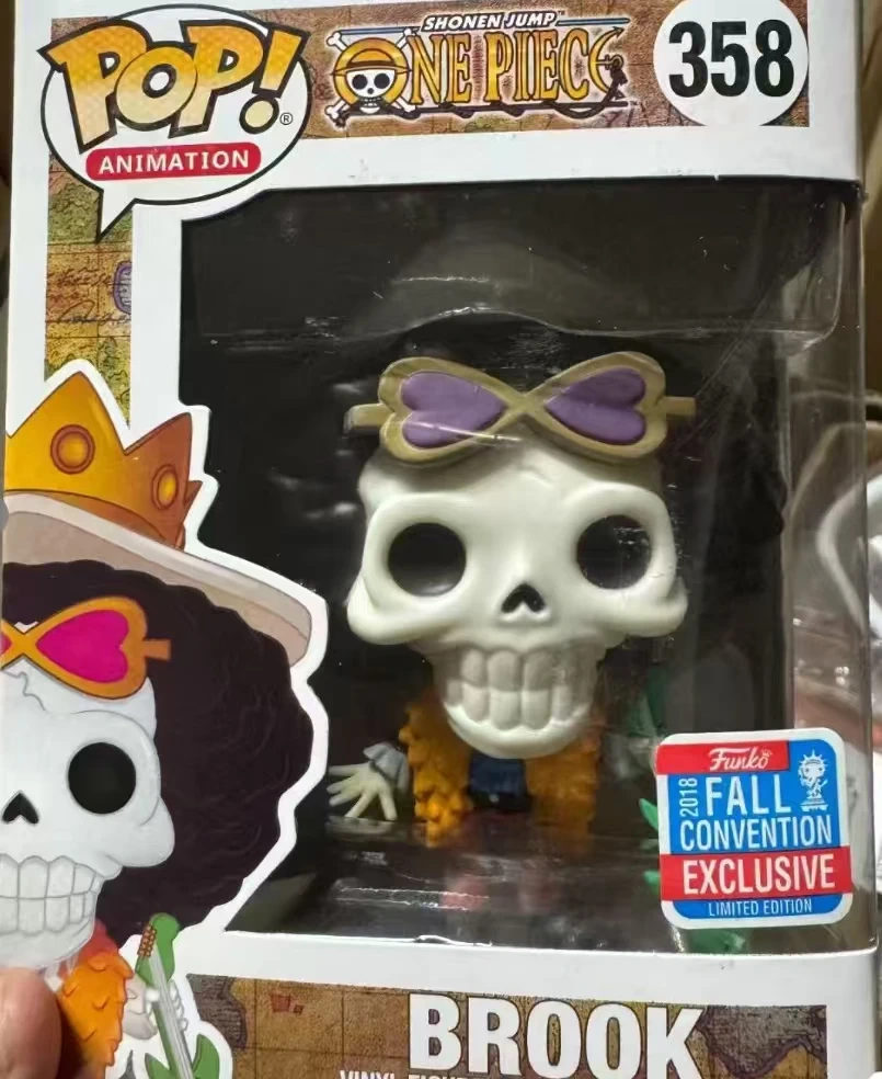 This is a Funko Pop! Animation vinyl figure of Brook from One Piece. It's the #358 model. This figure is a limited edition Fall Convention Exclusive. Includes original packaging.