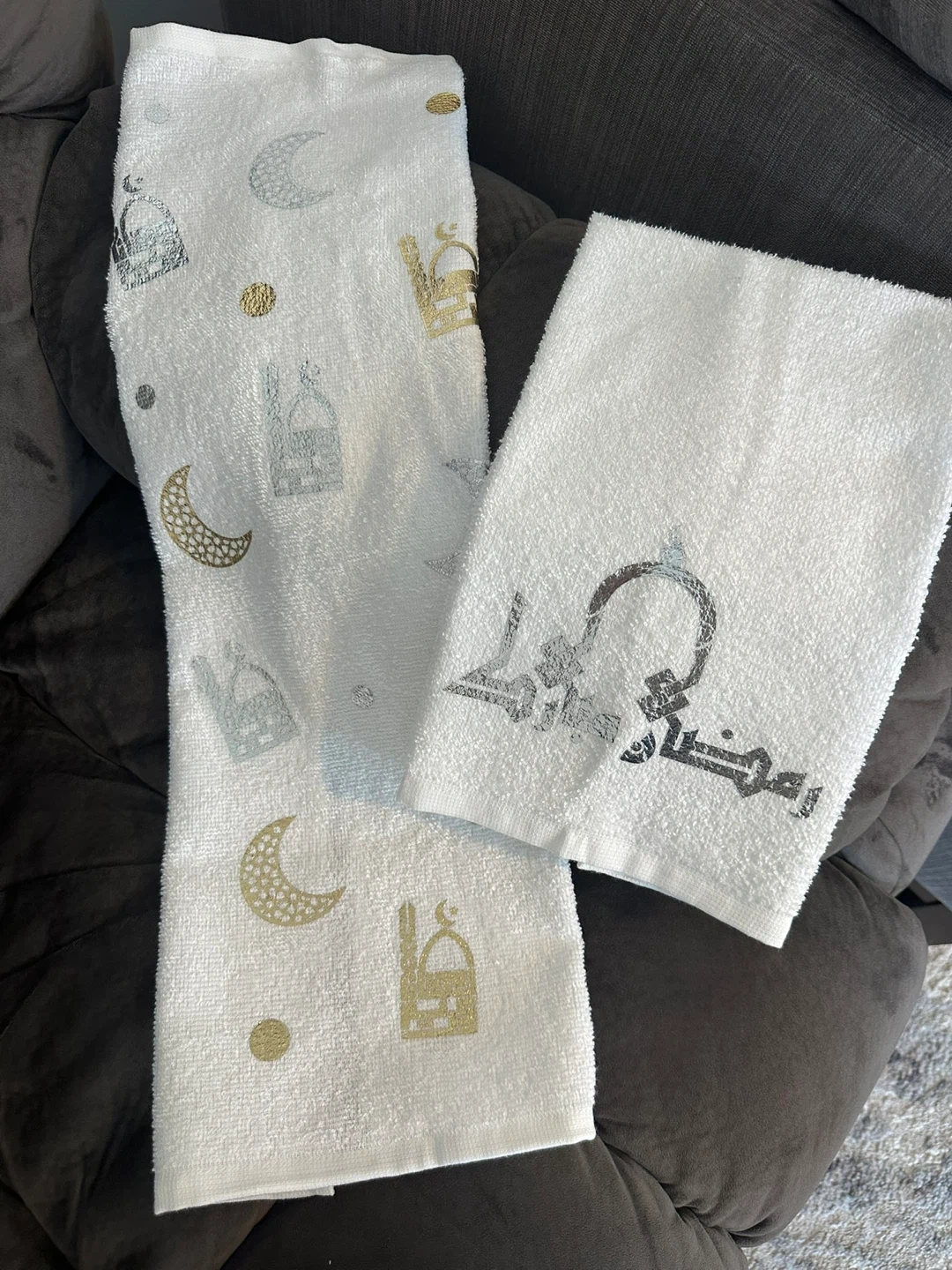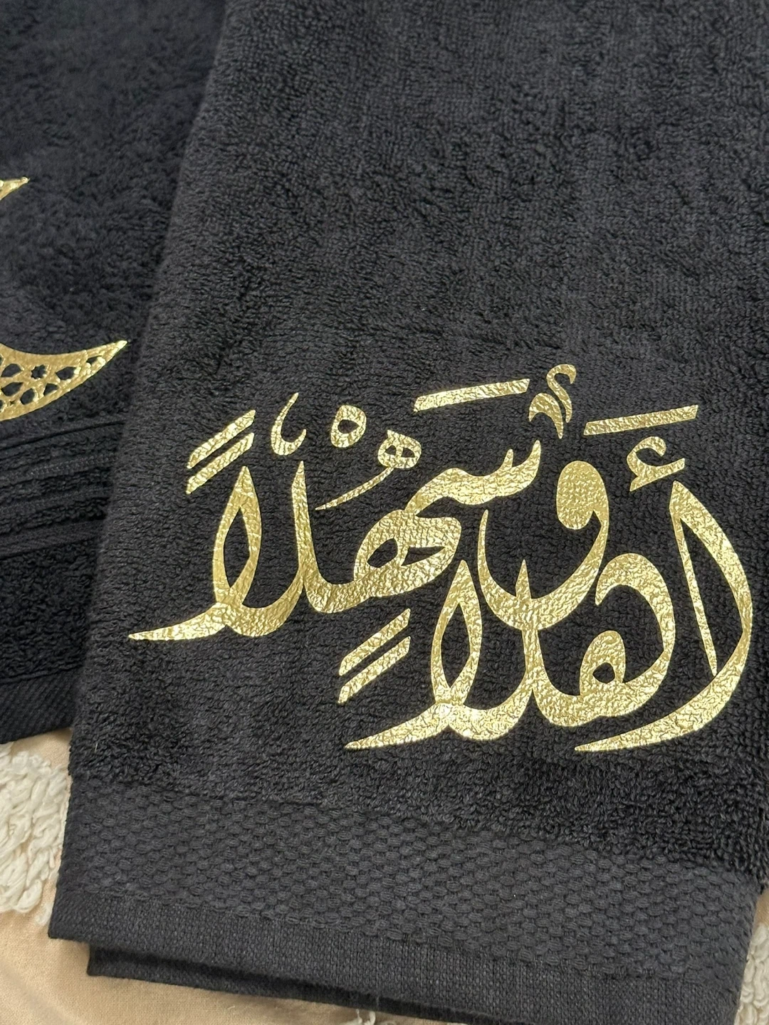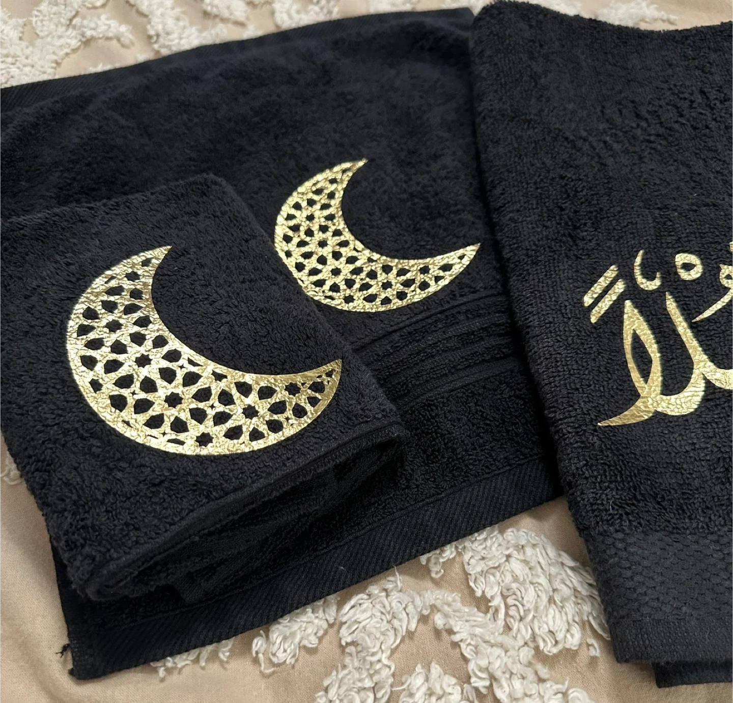 This collection includes a decorative lamp with Arabic calligraphy, a glass pitcher with gold accents, a wooden cutting board, and a set of two towels, all Perfect for Ramadan or Eid decorations, these pieces add a festive touch to your home.
