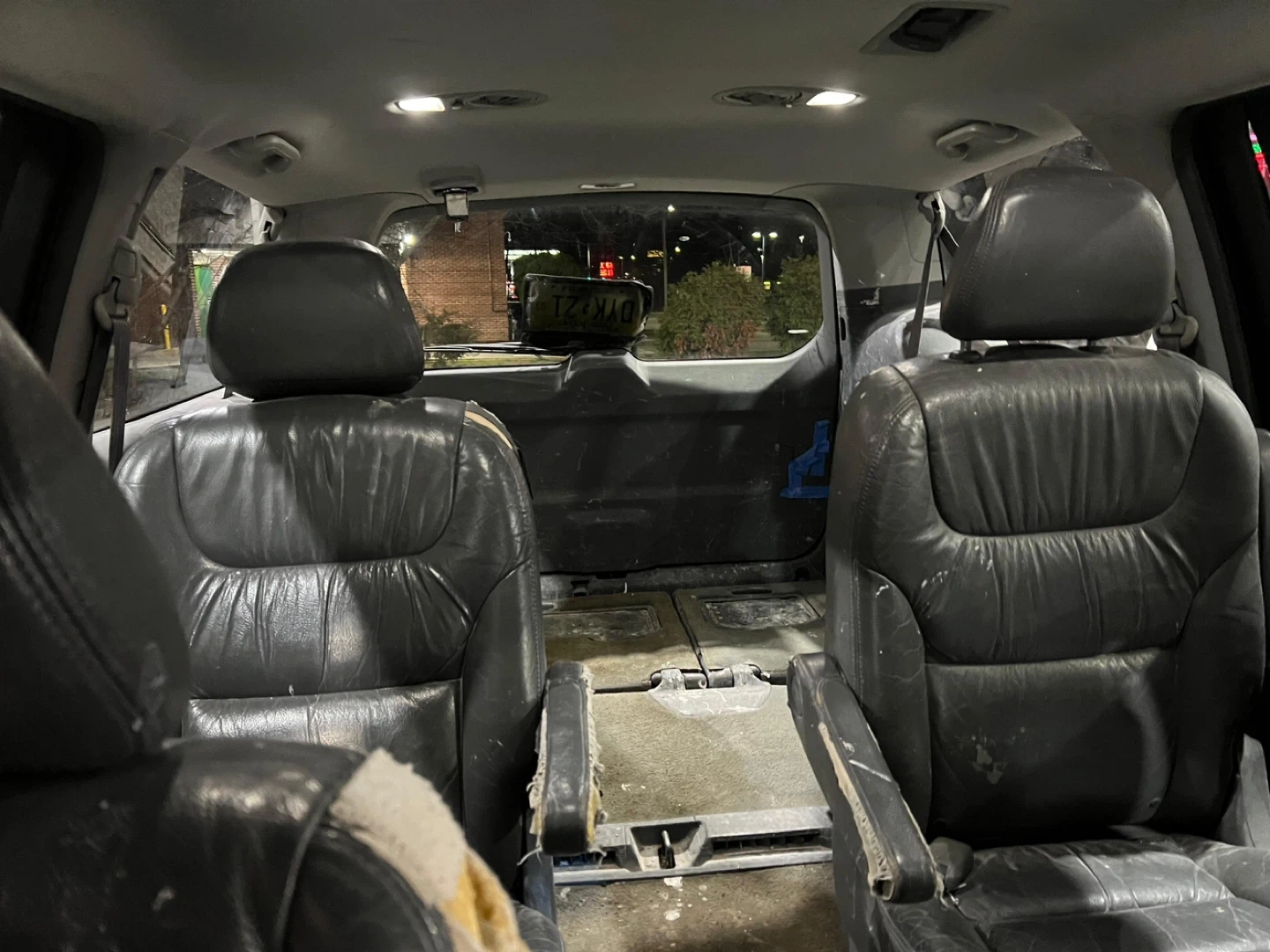 This is a blue Honda Odyssey minivan. It's a family vehicle with plenty of space. Features leather seats and a roof rack.