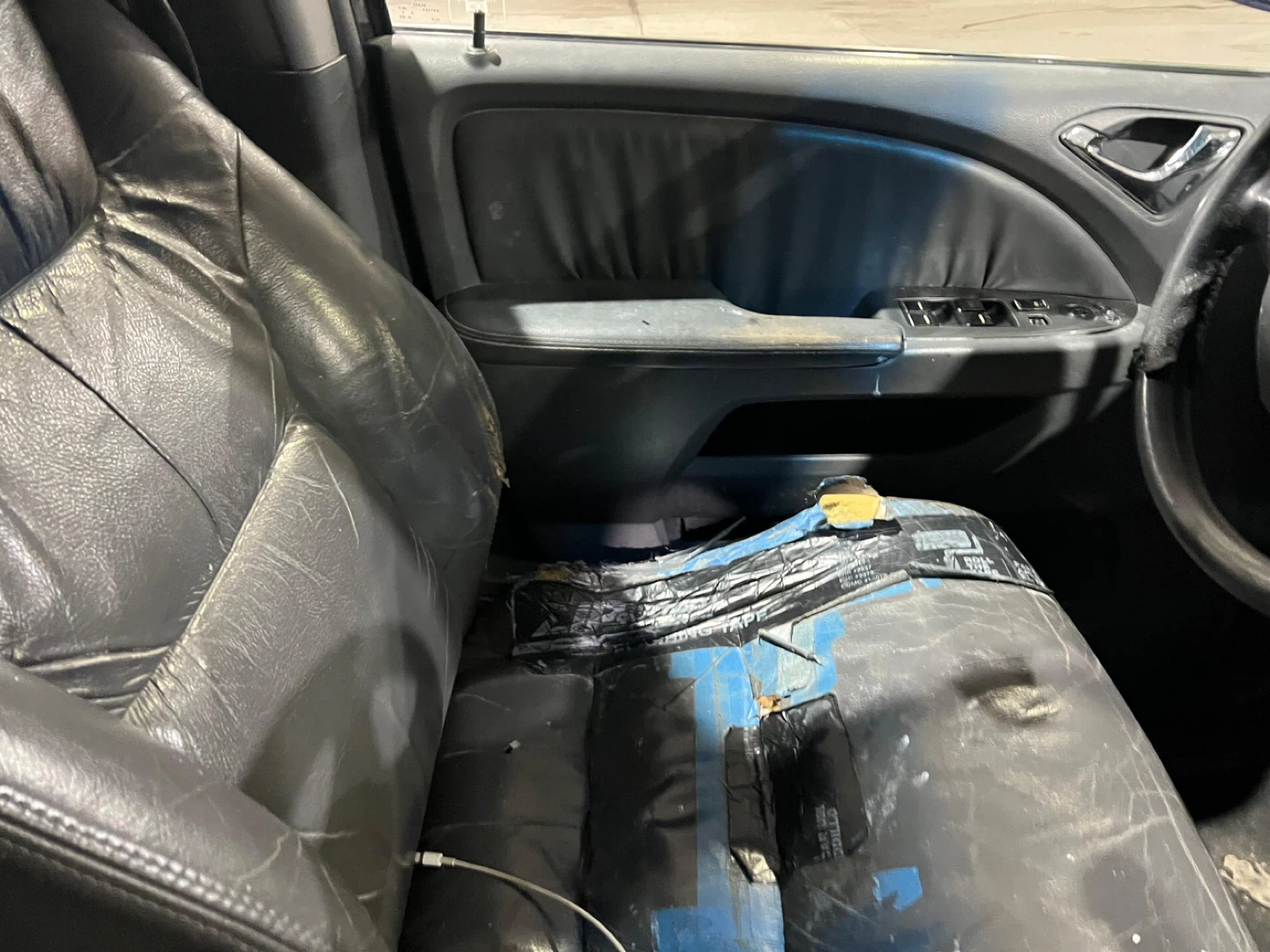 This is a blue Honda Odyssey minivan. It's a family vehicle with plenty of space. Features leather seats and a roof rack.