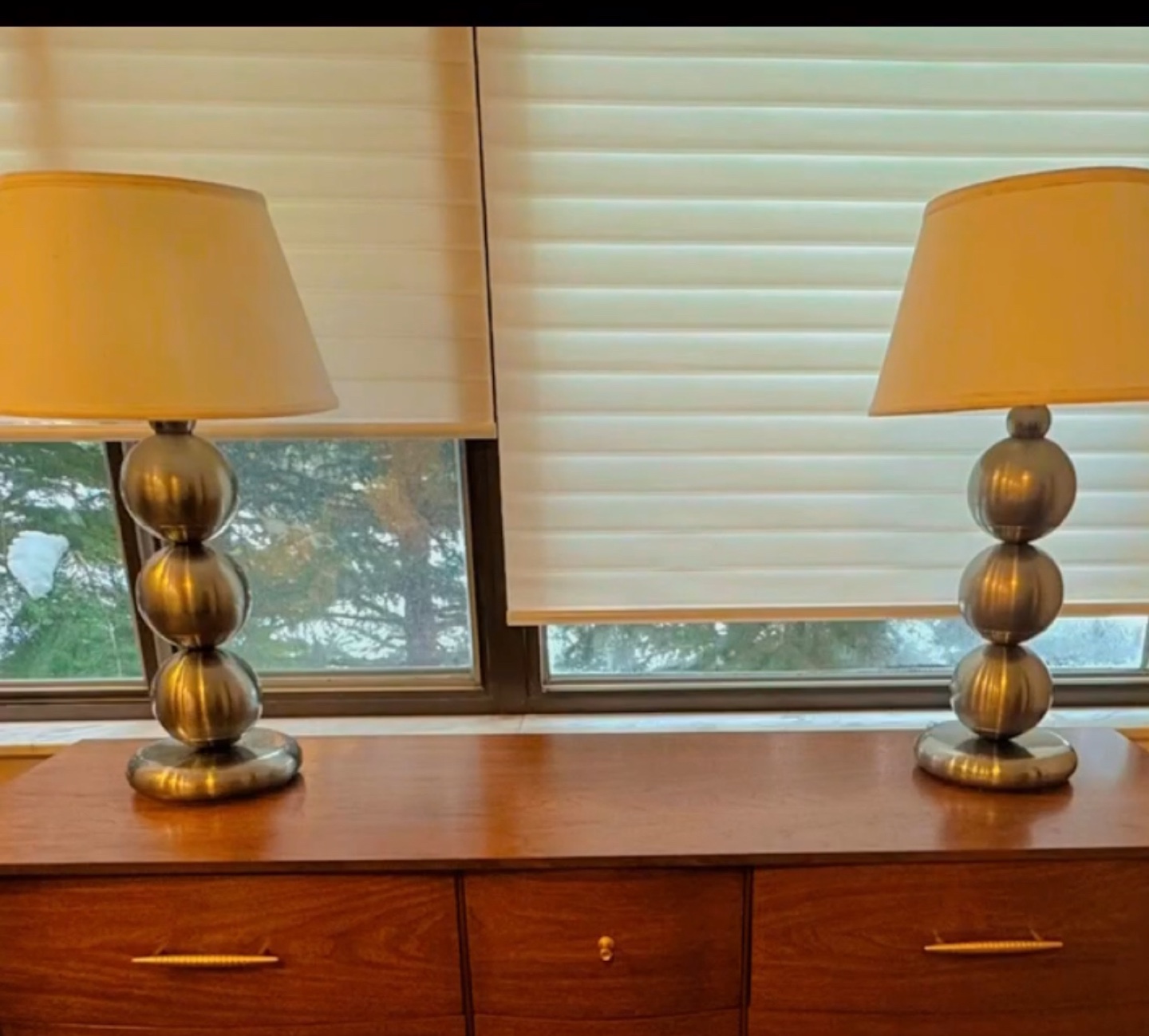 1 / 11 / 1Buy & SellPair of Mid-Century Modern Table LampsPair of Mid-Century Modern Table Lamps$150Stylish lamps, metallic silver finish. Three-ball stacked base. Cream-coloured shades. Excellent for a bedroom or living room.ConditionLike newWHERE TO MEETSteeles Avenue West & Bathurst StreetView MapSELLERverifiedTeresaThornhill18612 reviews1 chats·3 favorites·176 viewsSEND CHAT TO SELLERHi Teresa! I’m interested in your listing.Hi Teresa! I’m interested in your listing.Get the Karrot app to chatSign In to chat