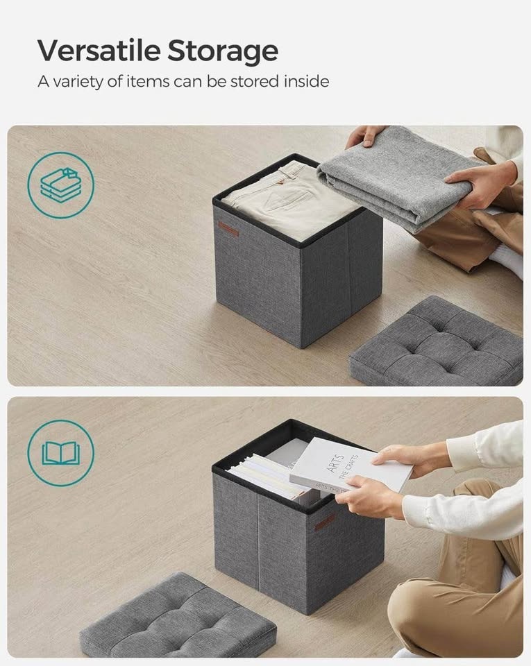 Compact, stylish, and practical folding storage ottoman. Works perfectly as a footrest, extra seat, or hidden storage. Strong, modern, and great for any room.