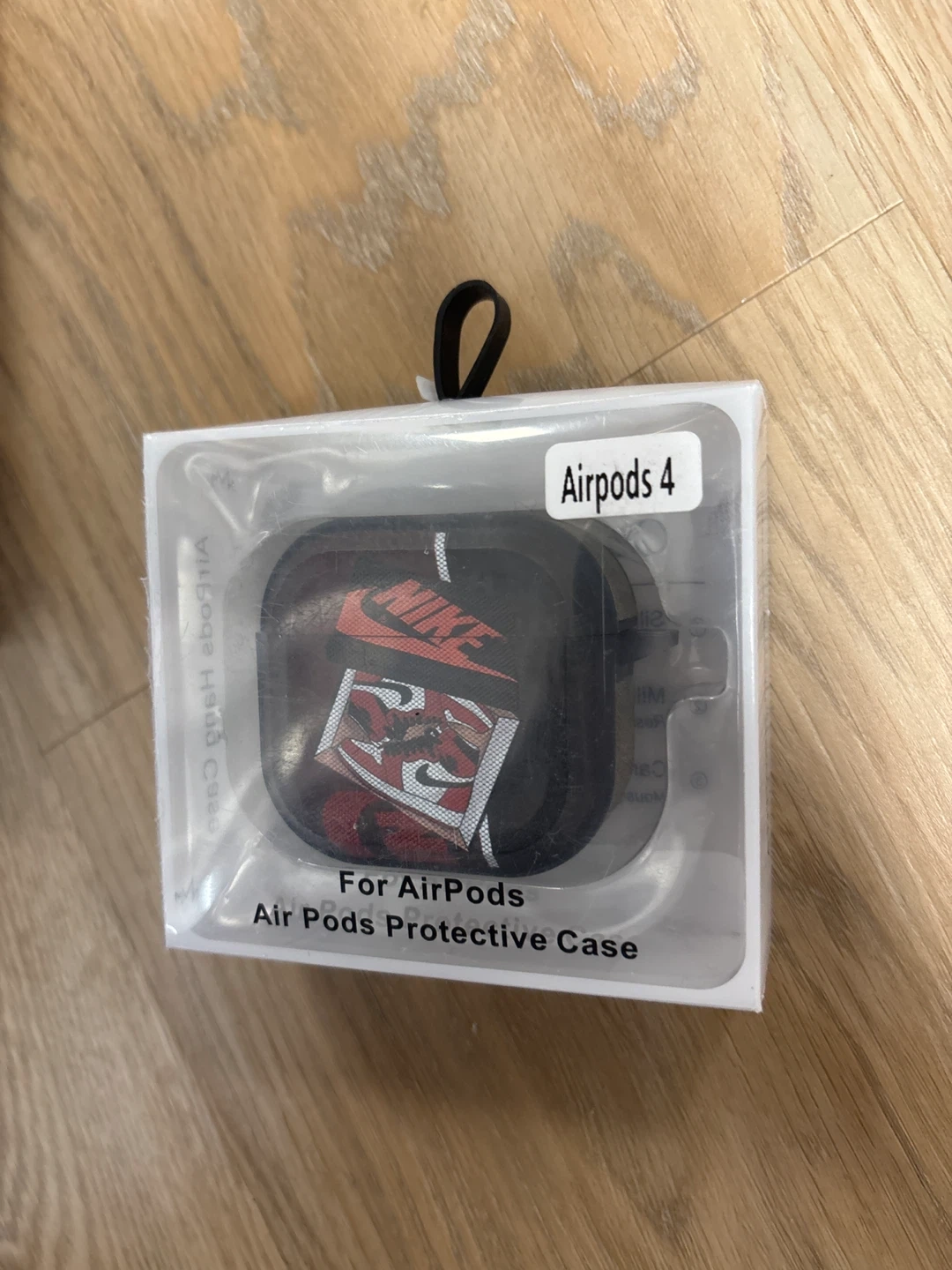 This is a protective case for Air Pods with a Nike Air Jordan design. It comes in a black colour and fits Air Pods 4.